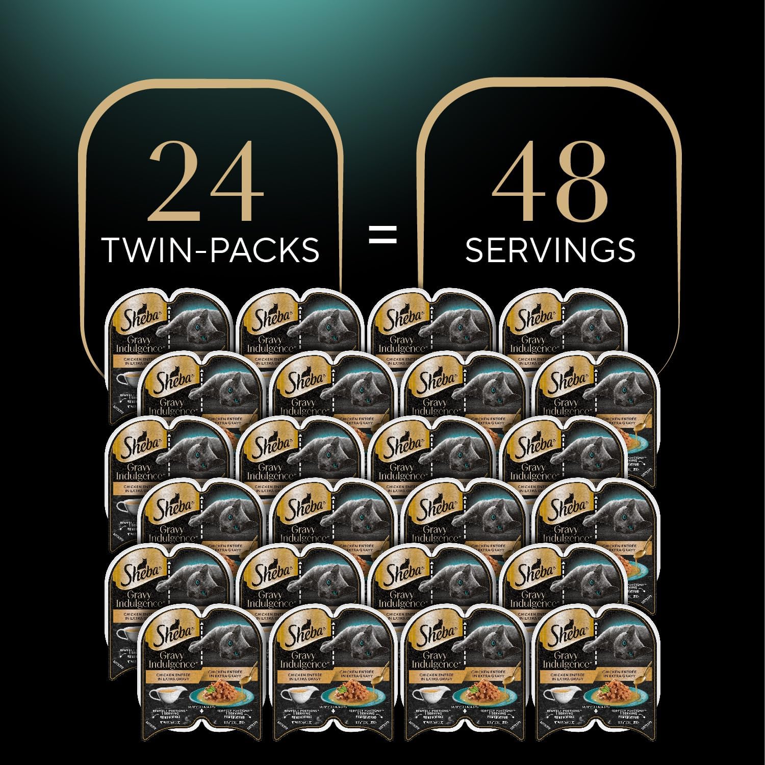 Sheba Gravy Indulgence Adult Wet Cat Food Chicken Entree in Extra Gravy, 2.6 oz. Twin-Pack Trays (24 Count, 48 Servings)
