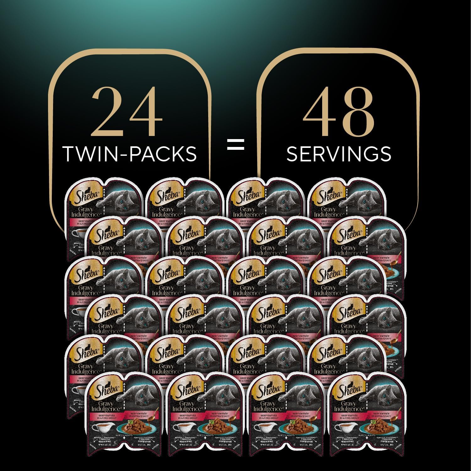 Sheba Gravy Indulgence Adult Wet Cat Food Beef Entree in Extra Gravy, 2.6 oz. Twin-Pack Trays (24 Count, 48 Servings)