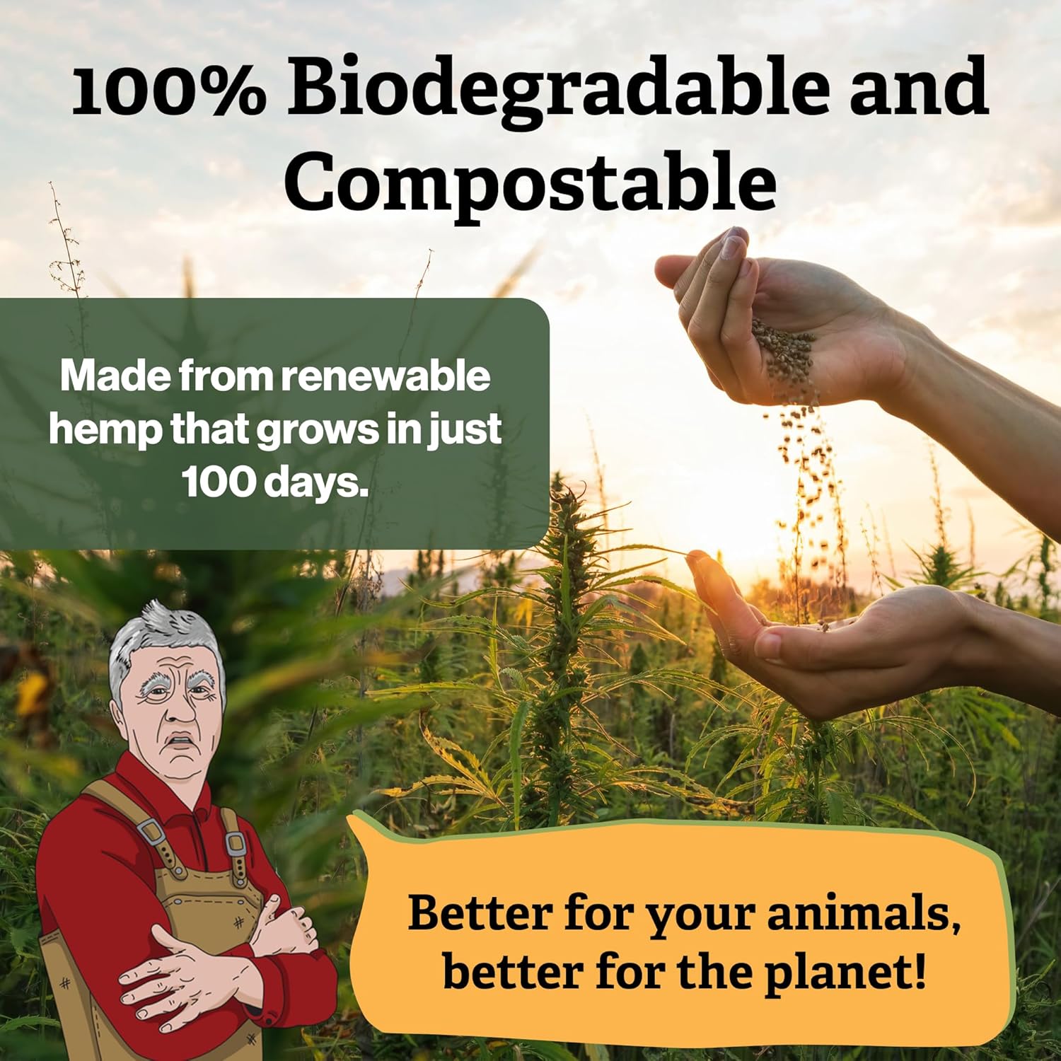- 100% Biodegradable & Compostable: Feel good about the fact you are purchasing and using an all-natural and sustainable product. Unlike shavings, industrial hemp is 100% biodegradable and compostable at end of life and will quickly breakdown in your garden or compost.