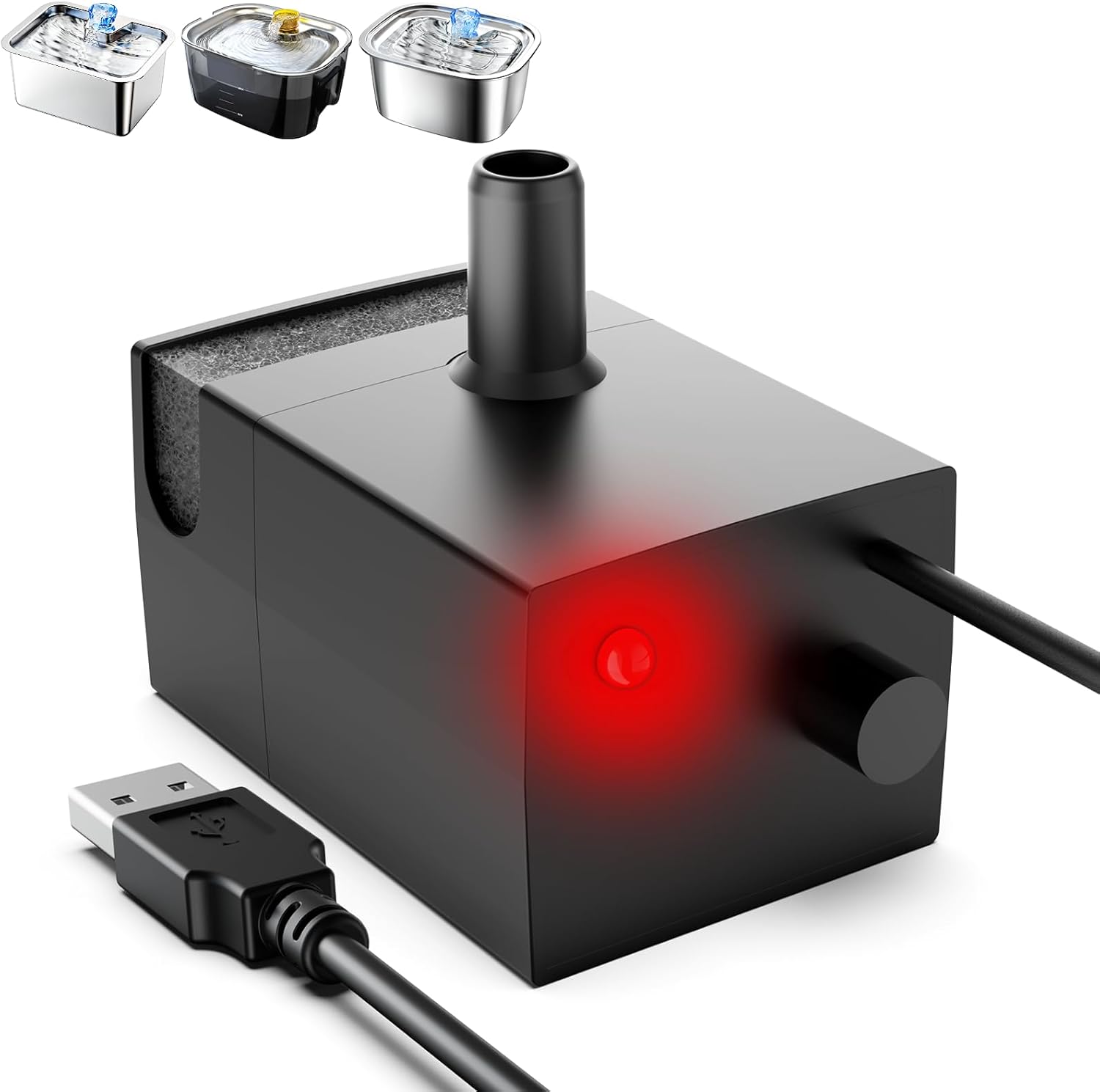 - Our pet fountain water pump comes with a 6.6 ft power cord for easy connection to a power source. It can be effortlessly disassembled and separated without the need for any tools, ensuring straightforward cleaning and maintenance. Additionally, the water pump features a built-in filter sponge designed to absorb hair and impurities