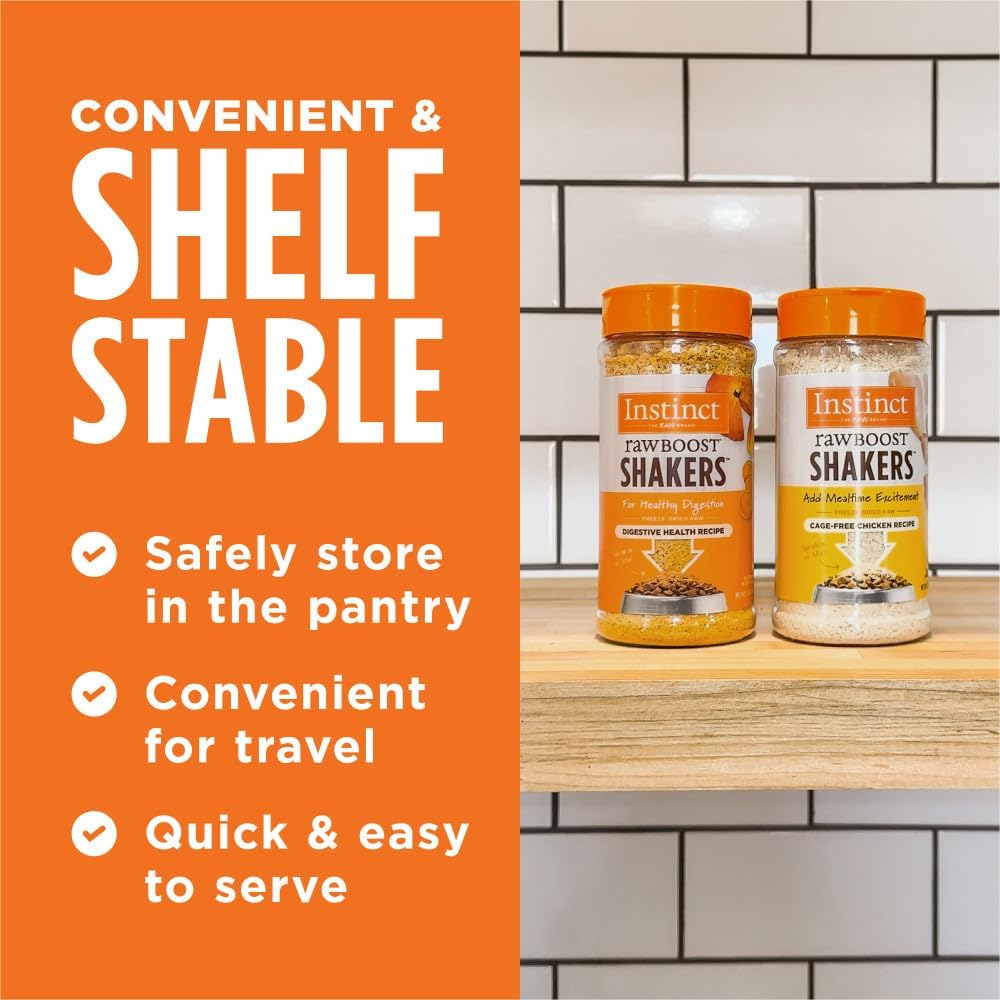 - FREEZE-DRIED RAW CAT FOOD TOPPER FOR DIGESTIVE HEALTH: Instinct Raw Boost Shakers Gut Health makes it easy to add raw nutrition and targeted digestive support to your cat’s bowl. Made with cage-free chicken and natural ingredients like pumpkin, sweet potato, chicory root, and apple cider vinegar.