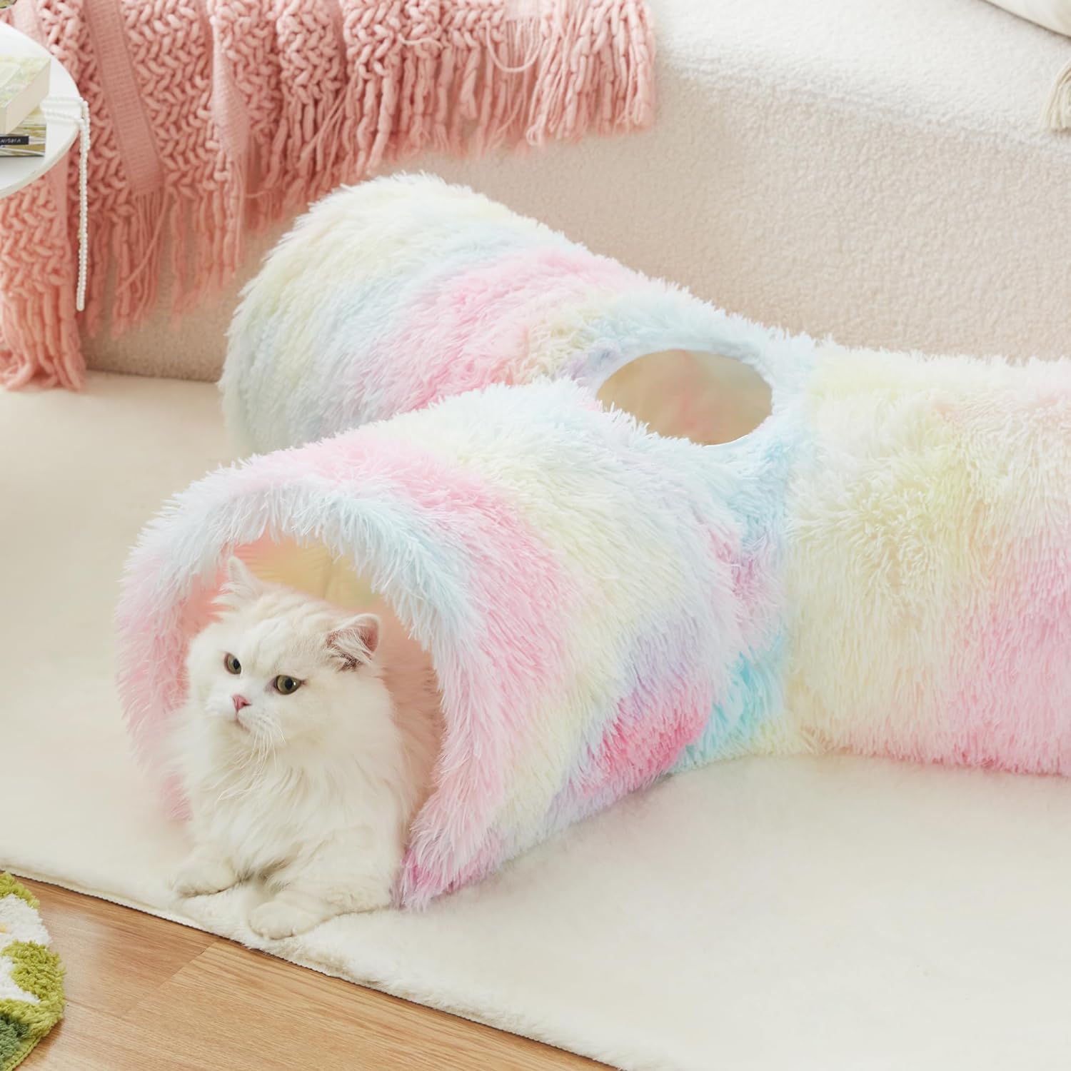 Tempcore Plush Pet Cat Tunnel Tube Cat Toys 3 Way Collapsible, Tunnels for Indoor Cats,Kitty Tunnel Bored Pet Toys Peek Hole Ball Puppy, Kitty, Kitten, Rabbit Rainbow