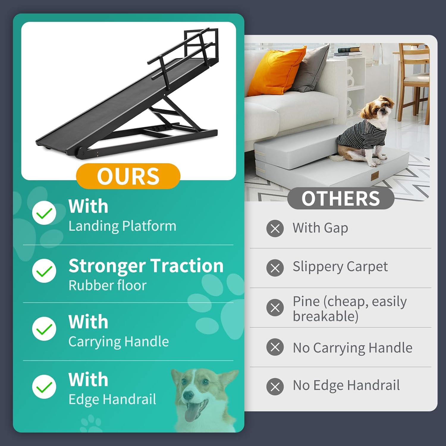 - 5 HEIGHT ADJUSTABLE - Our Pet Ramp can be easily adjusted to 5 heights, you can adjust the appropriate height for your dog ramp according to the height of your bed, sofa and other furniture. Adjustable height to 15.7", 19.6", 23.6'', 25.5'' and 27.5", letting your pet easily go up and down now