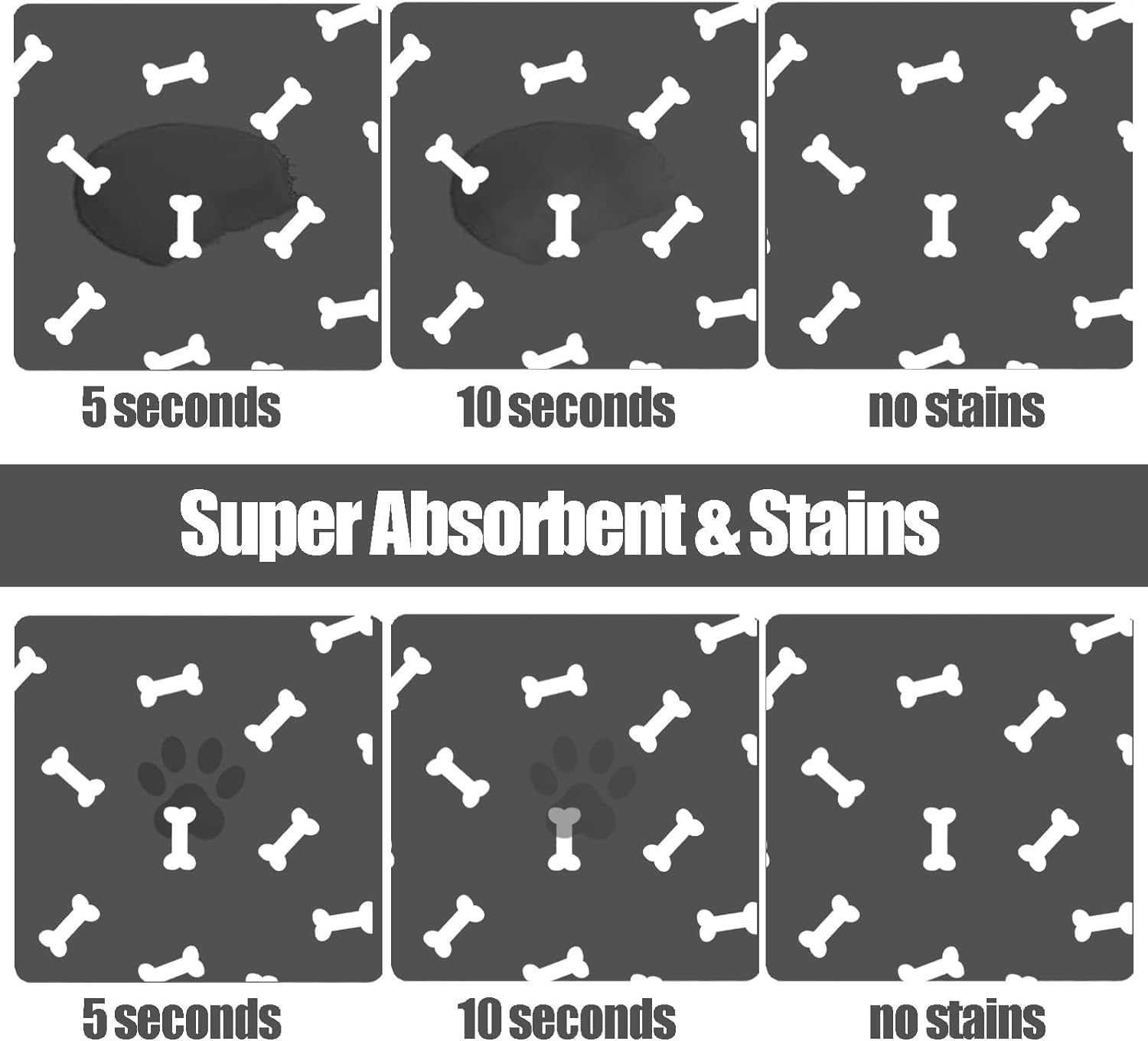 - [Absorbent & No Stains]: Perfect dog accessories.This dog food mat can stop water from overflowing. Super absorbent and quick-dry ability can avoid wetting pet paws even for messy drinkers. No marks will be left when food and water are dropped on the pet food mat. Good dog products to care your pet while reducing the times of cleanings.