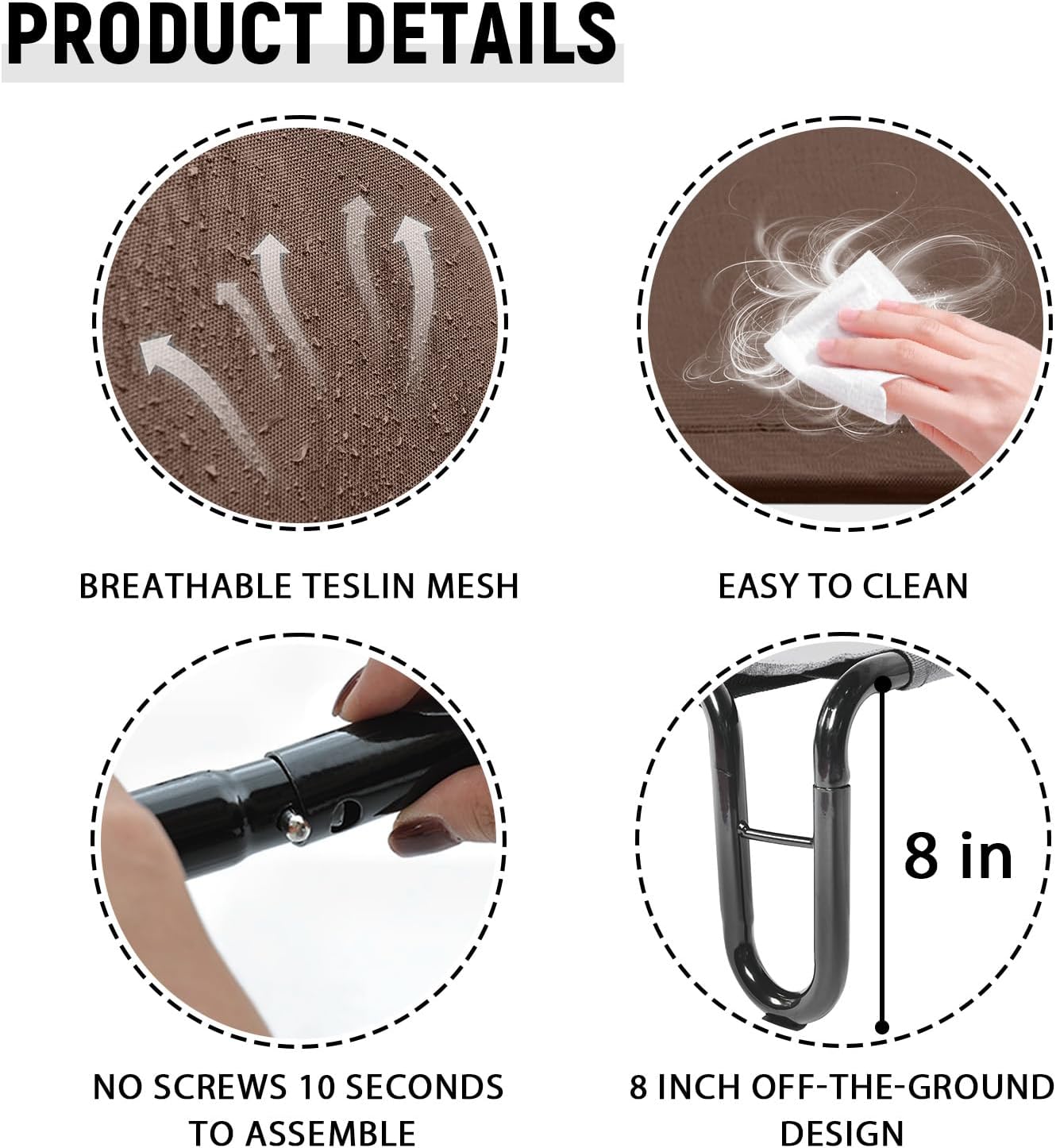 pettycare Elevated Outdoor Dog Bed - Raised Cots for Large Dogs, Waterproof Pet Bed Easy to Assemble, Cooling with Breathable Teslin Mesh, Durable, Non Slip, Up to 65 lbs, Brown