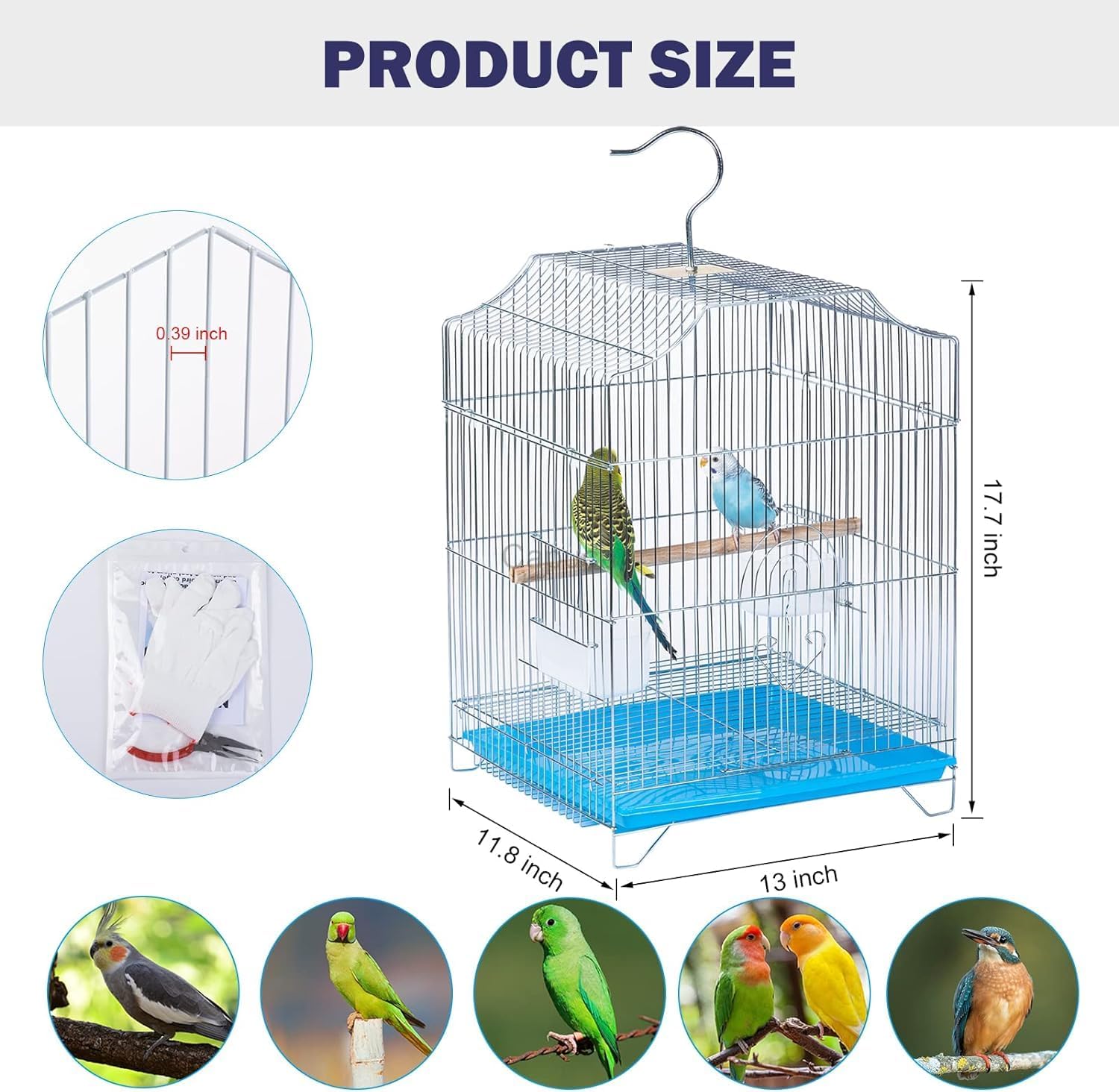 - MEASUREMENTS : Birdcage 13” (W) x 11.8” (D) x 17.7” (H) ; Perfect for suitabe for conures, lories, quakers, cockatiels, lovebirds, finch, green cheek, lories, doves and other small parrots