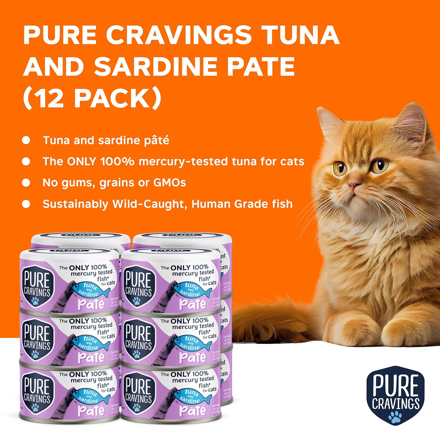 Tuna and Sardine Pate, Canned Wet Cat Food, 100% Mercury-Tested, Moist Can Fish, Grain-Free Protein, Non-GMO, 12 Pack
