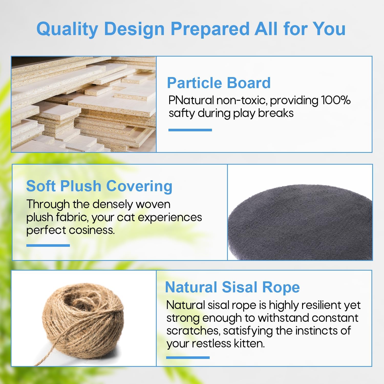 - 🐱 【Posts for Scratching Covered in Sisal 】These are scratching surfaces that are integrated into the framework. Cats love to bury their claws in sisal because it's a sturdy substance with a coarse texture. Our cat tree promotes healthy scratching habits and helps discourage cats from damaging furniture by offering dedicated spaces for them to scratch.