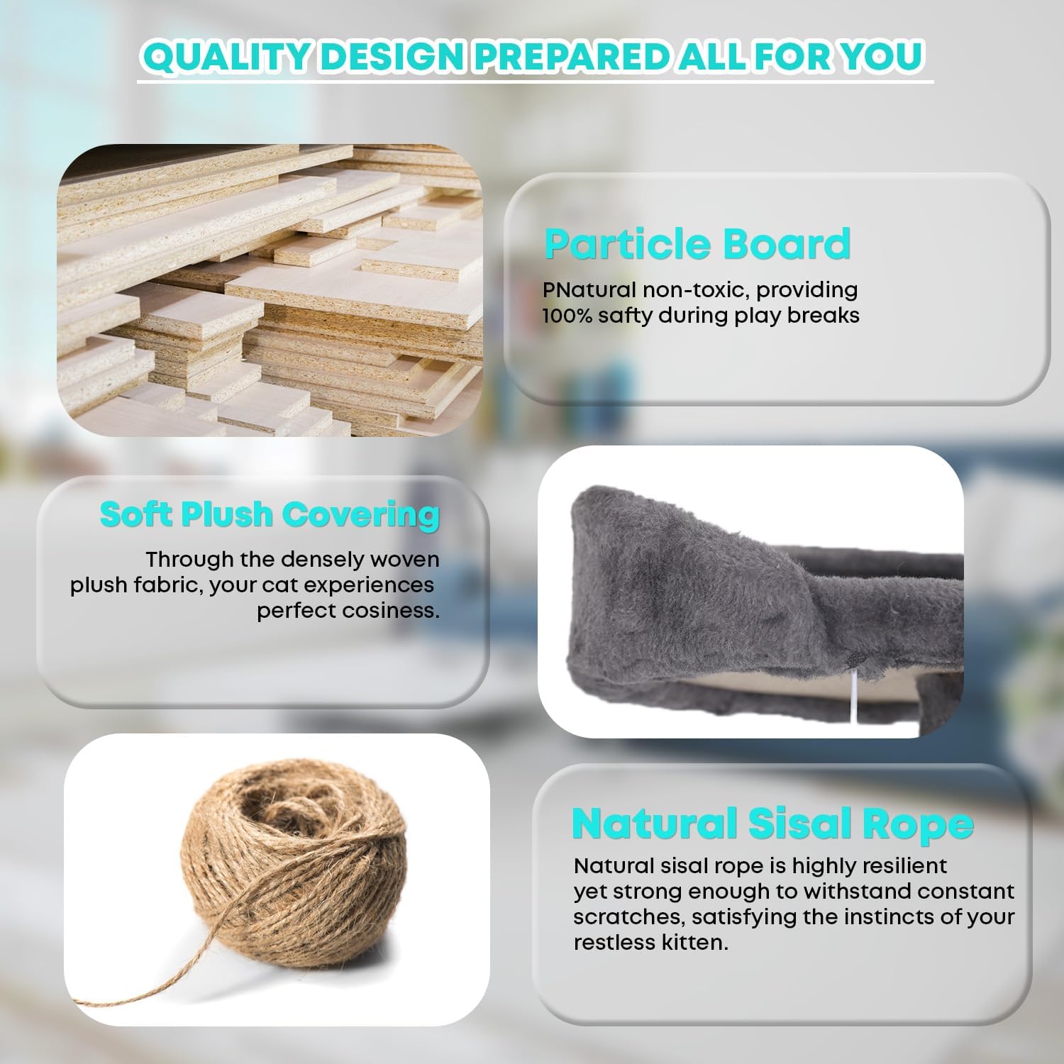- Material : Particleboard, Plush, Sisal
