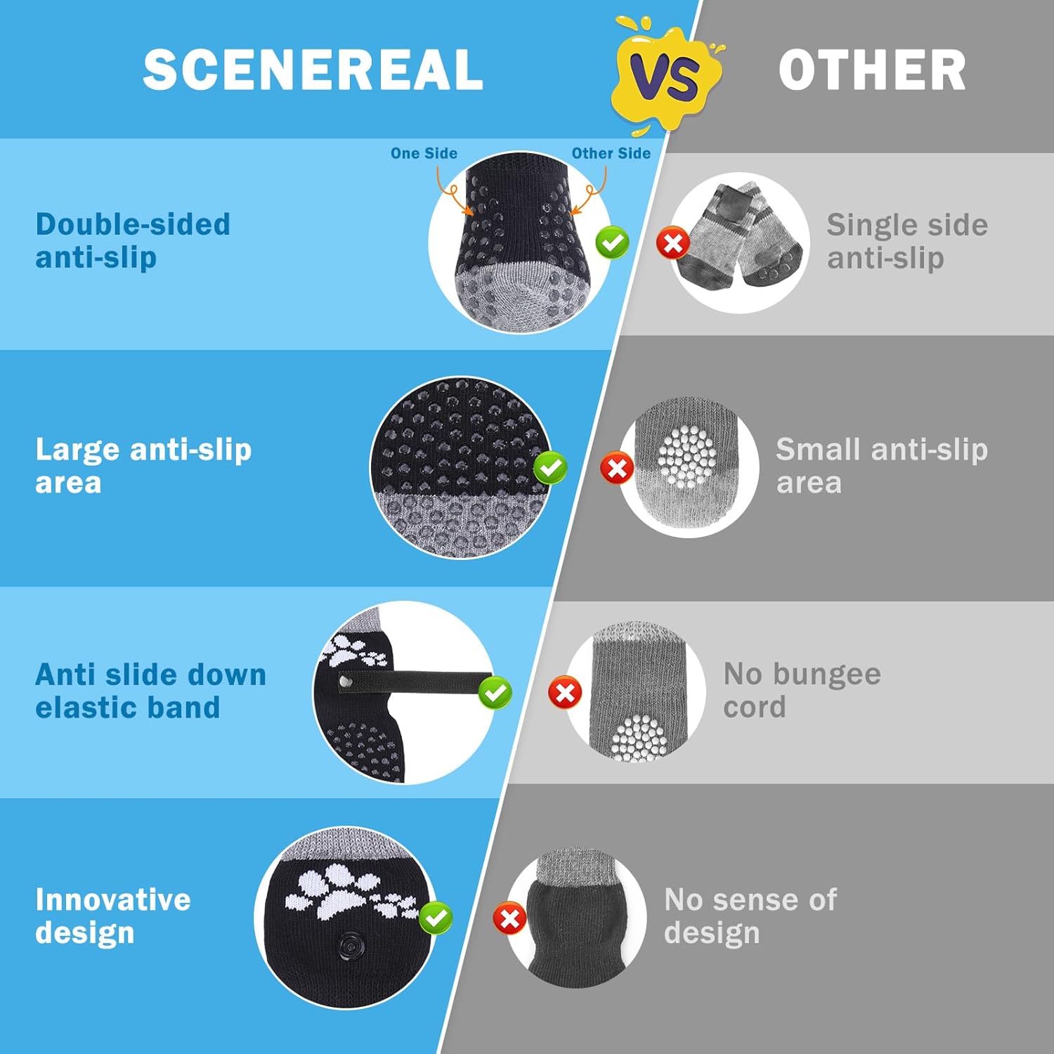 SCENEREAL Anti Slip Dog Sock to Prevent Licking Paws for Hardwood Floors, Boots & Paw Protector Shoes for Hot/Cold Pavement with Grippers, Double Sides Grips for Small Medium Large Senior Dogs, L