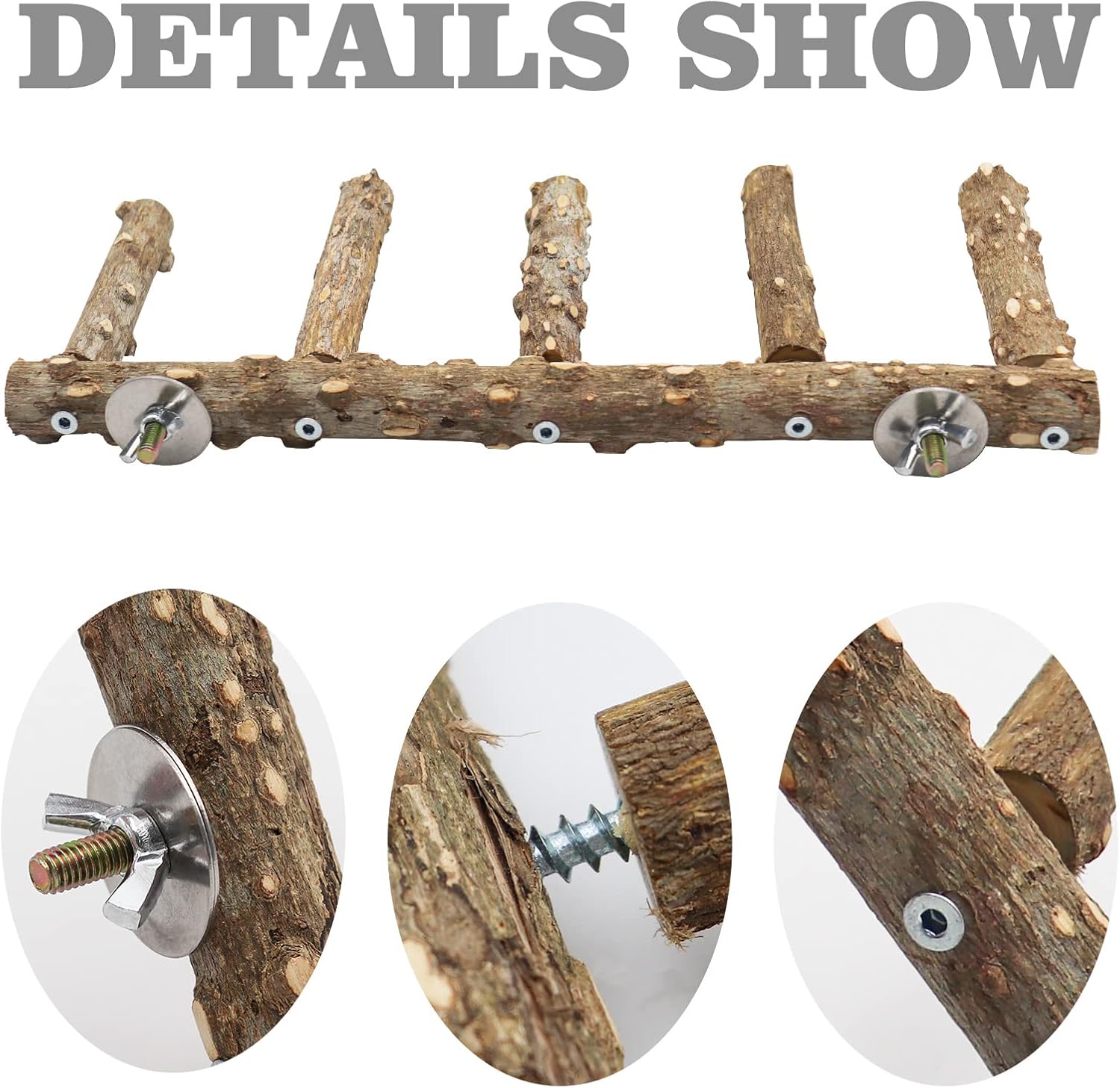 - Natural Prickly Ash Wood: Crafted from natural prickly ash wood, this bird climbing ladder is safe for your pets. It serves as a versatile accessory for climbing, standing, and playing, while also functioning as a chewing toy to help birds sharpen their beaks and maintain beak health.