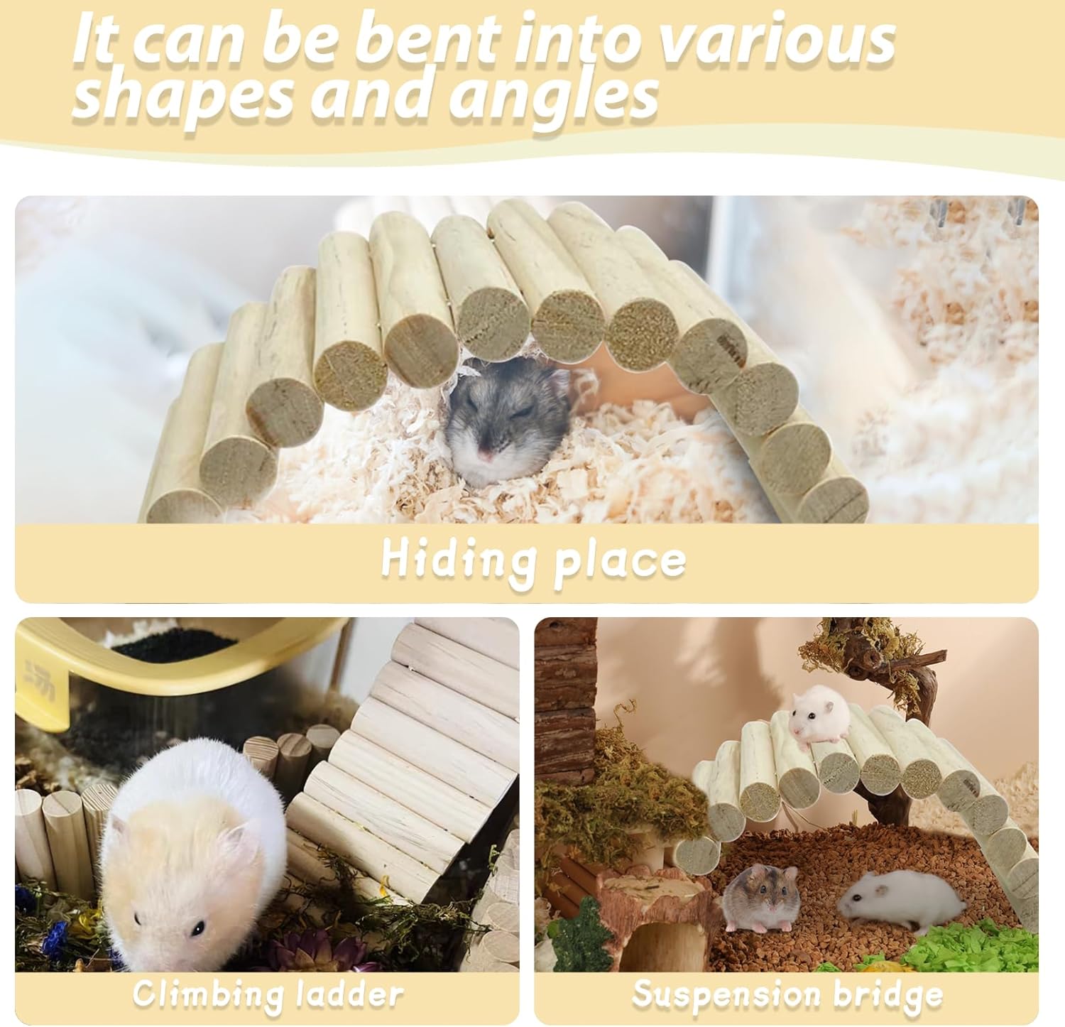 - Safe and Natural: We understand how important it is to prioritize the safety of your pets. PIVBY hamster wood bridge are made from natural materials. The wooden Ladder Bridge is smooth and splinter-free preventing any harm to your pets' paws or teeth