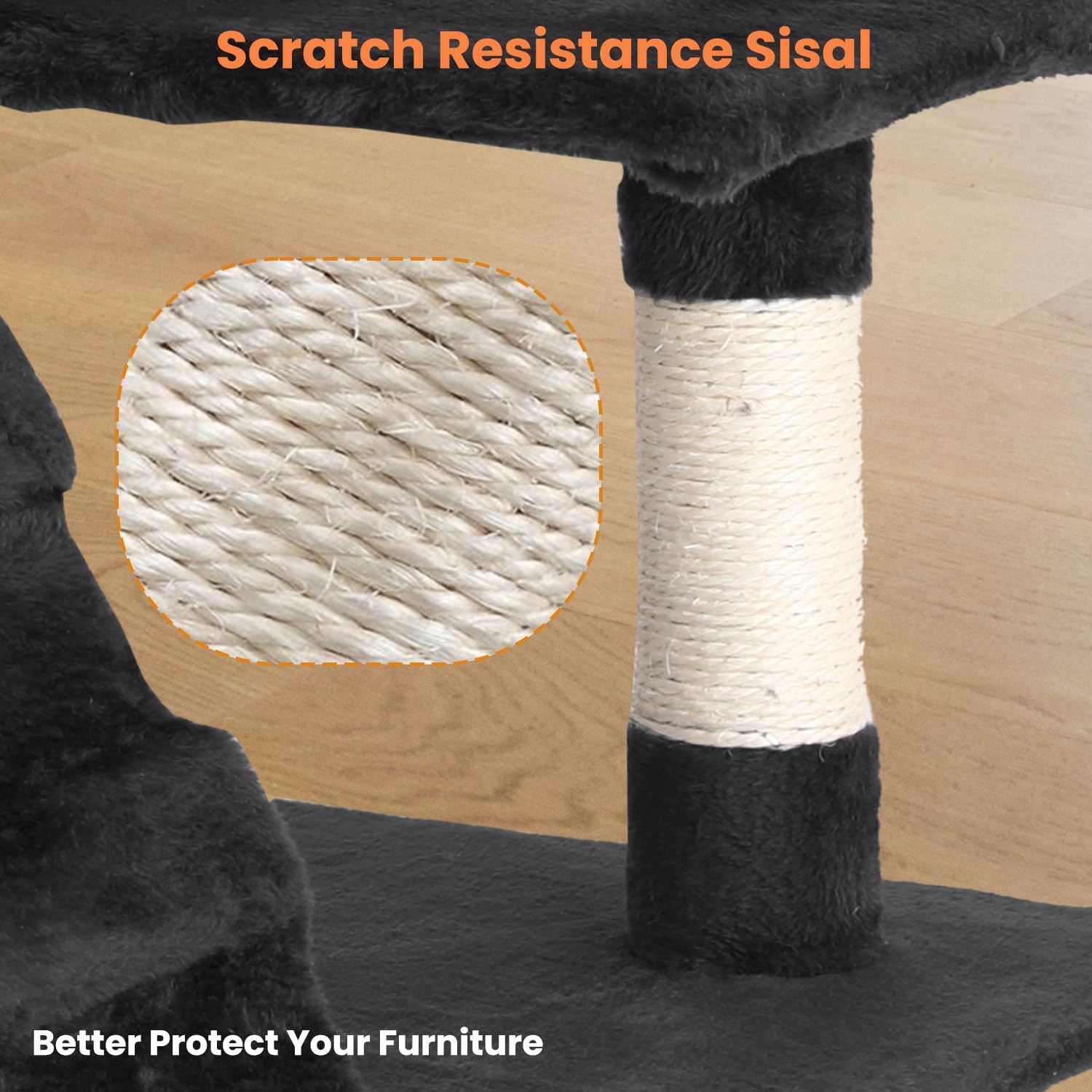 - Protect Your Furniture:Our fully functional and uniquely designed large cat scratching tree is a magical castle for kittens, providing a great place for your feline friend to climb up and down. It's a great way to relax while protecting delicate furniture from scratches, and with this tall indoor cat scratching tree, your cat can enjoy a full day in the cat tower!