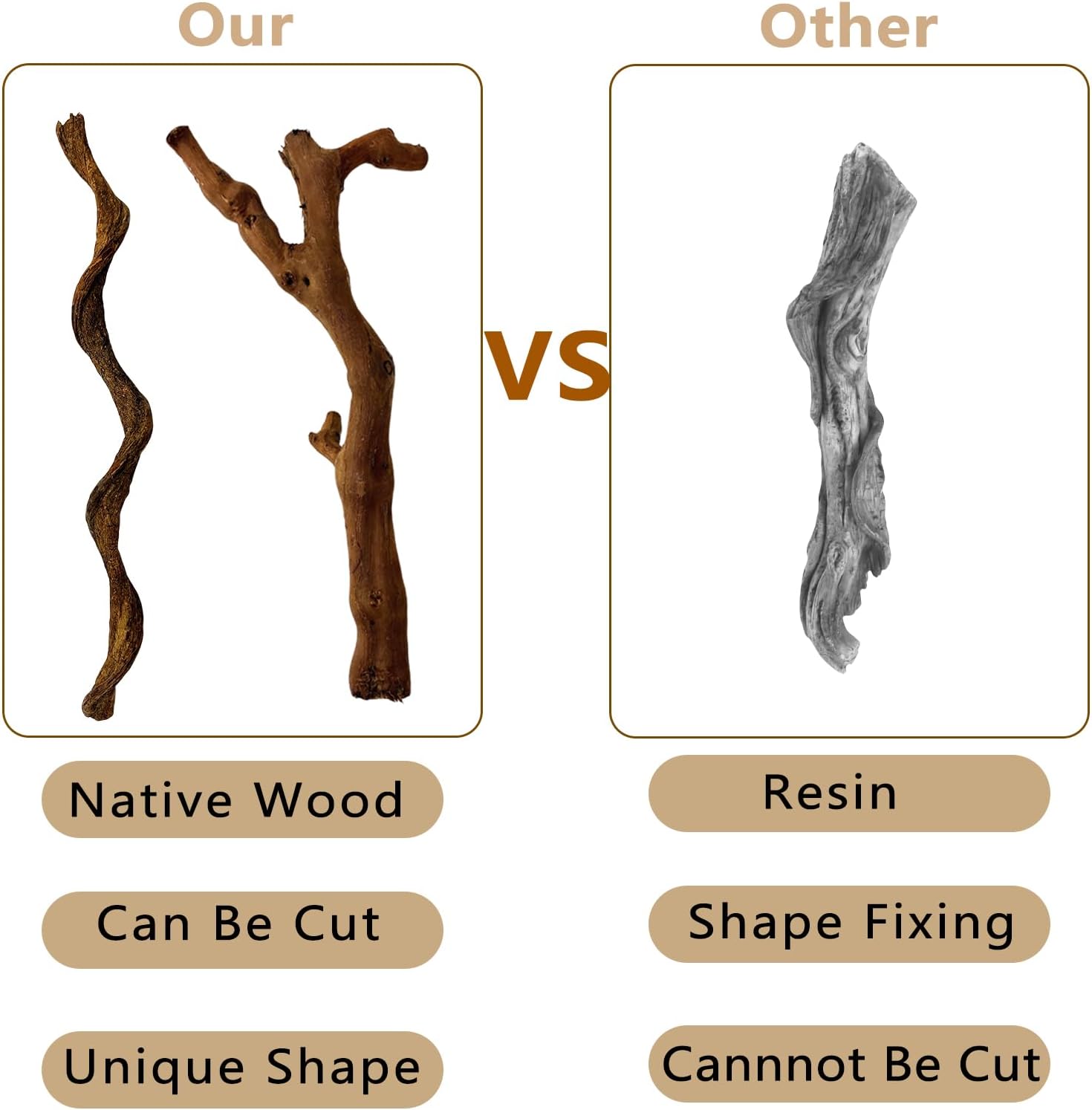 - 【Natural Wood Branches】Crafted from natural vine branches, the reptile branches are safe, and won't harm your pets. Your reptiles will enjoy climbing and basking in the sun on these branches, making them perfect for reptile climbing and providing appropriate exercise.