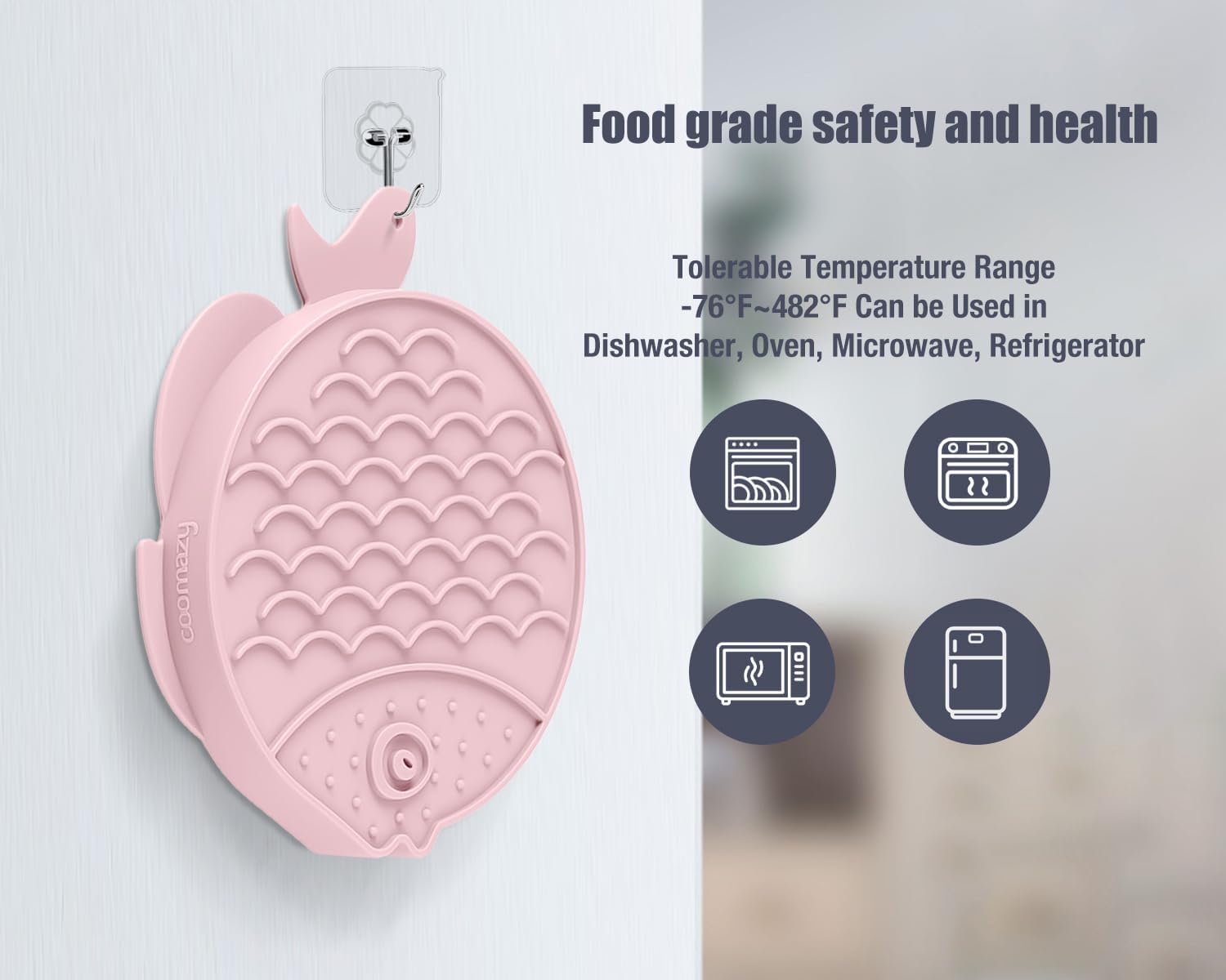 Coomazy 2-in-1 Silicone Slow Feeder Dog Cat Bowls, Lick Mat Interactive Puzzle Toy for Pets Dry/Wet Food Training, Keeps Dogs Cats Busy, Prevents Puppy Kitty Overeating (Pink, 1.2 Cup)