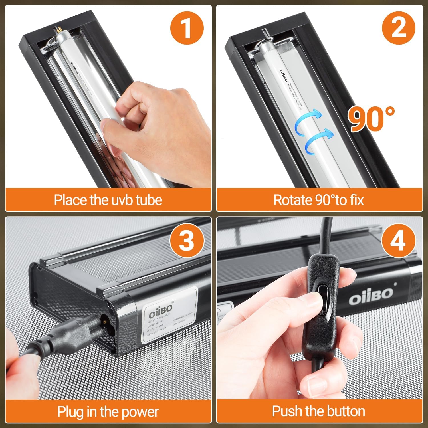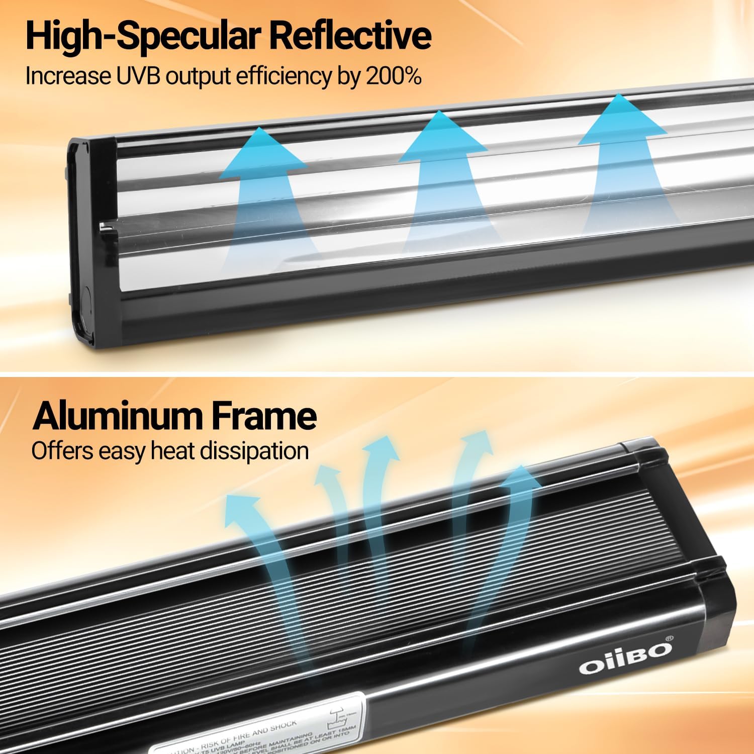 - 【Reptile Health】OiiBO 39-Watt T5 HO Terrarium Hood for Reptiles with 10.0 UVB UVA Lamp provides essential UVB and UVA rays that simulate the UVB spectrum of sunlight, aiding reptiles in synthesizing vitamin D3, promoting healthy bone development, enhancing immunity, and preventing diseases. UVA rays stimulate reptiles' appetite and help meet their daily needs.