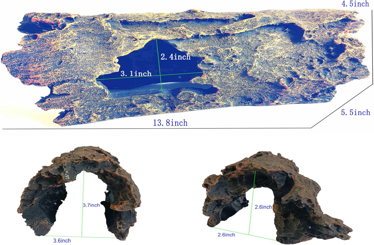 - 3.Multi-functional design.It meets the needs of reptiles to climb and bask in the sun to escape from caves,and provides an excellent swimming and playing place for fish and shrimp.The reptile basking platform is large enough to meet the long-term sunbathing needs of pet reptiles,and the cave is spacious,providing a private environment for pet reptiles to shed their skin,mate,and lay eggs.The multi-entrance design allows fish to swim freely.