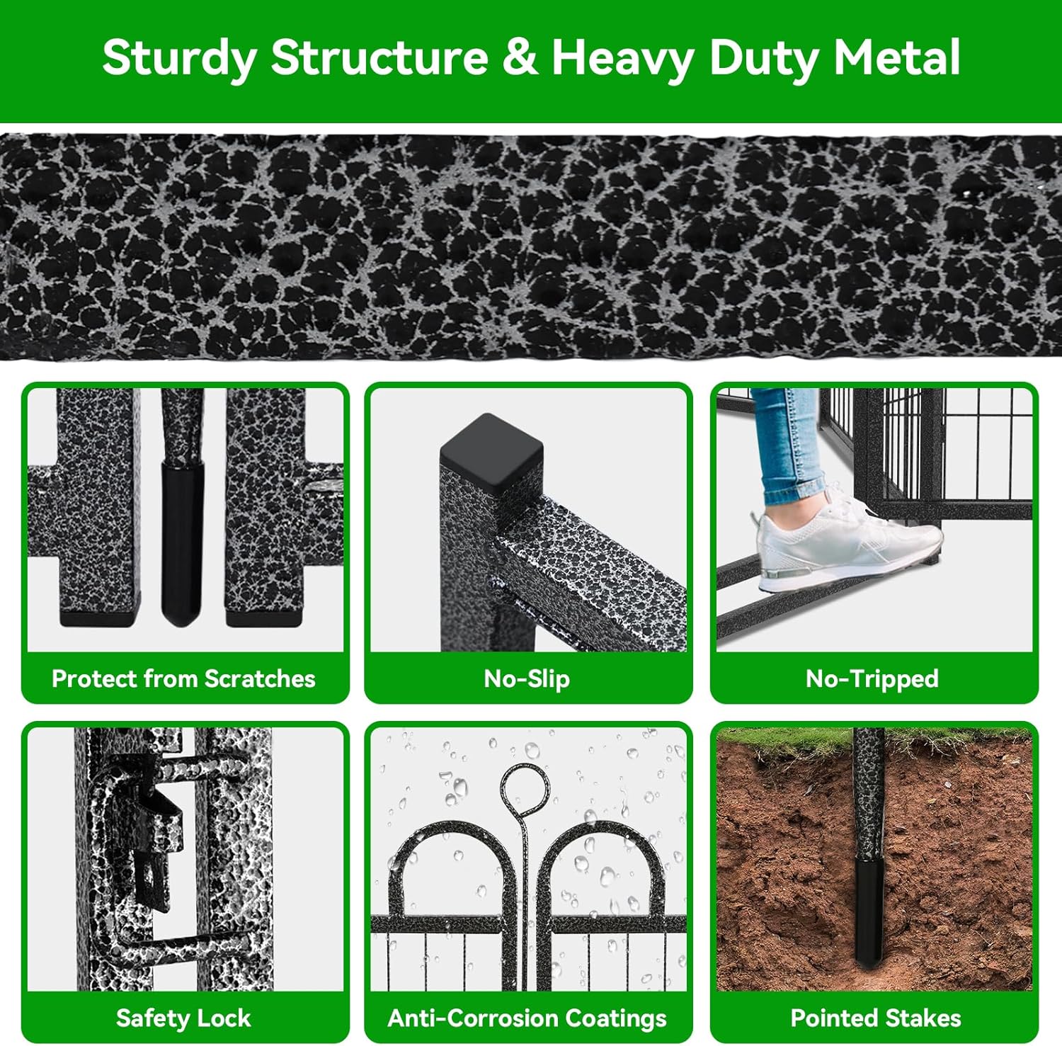 - 【Sturdy Structure & Stable Ground Stakes】Kfvigoho metal stakes are designed round top, which can be pounded into the ground for greater stability, this dog fence with sturdy structure, so dogs can't knock it down and keep them confined in a safe area, the pet pen works great for small, medium and large dogs and rabbits, ducks, turtles etc