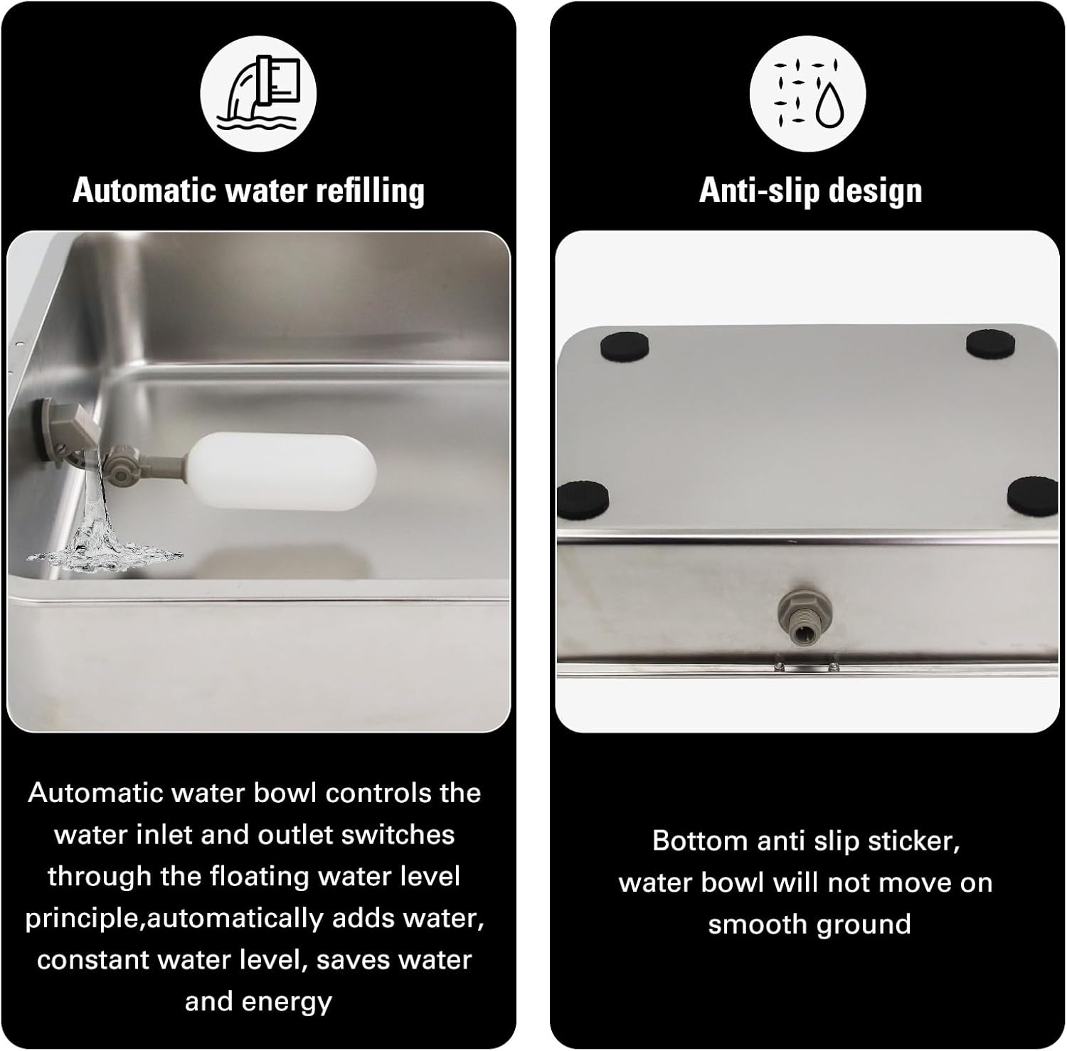 - -Automatic water filling: Automatic dog water bowl has a built-in water valve that can continuously self filling water. It will refills when the water level below the set level. Free your hands, save time and reducing water waste, ensuring that your animals always have fresh water to drink.
