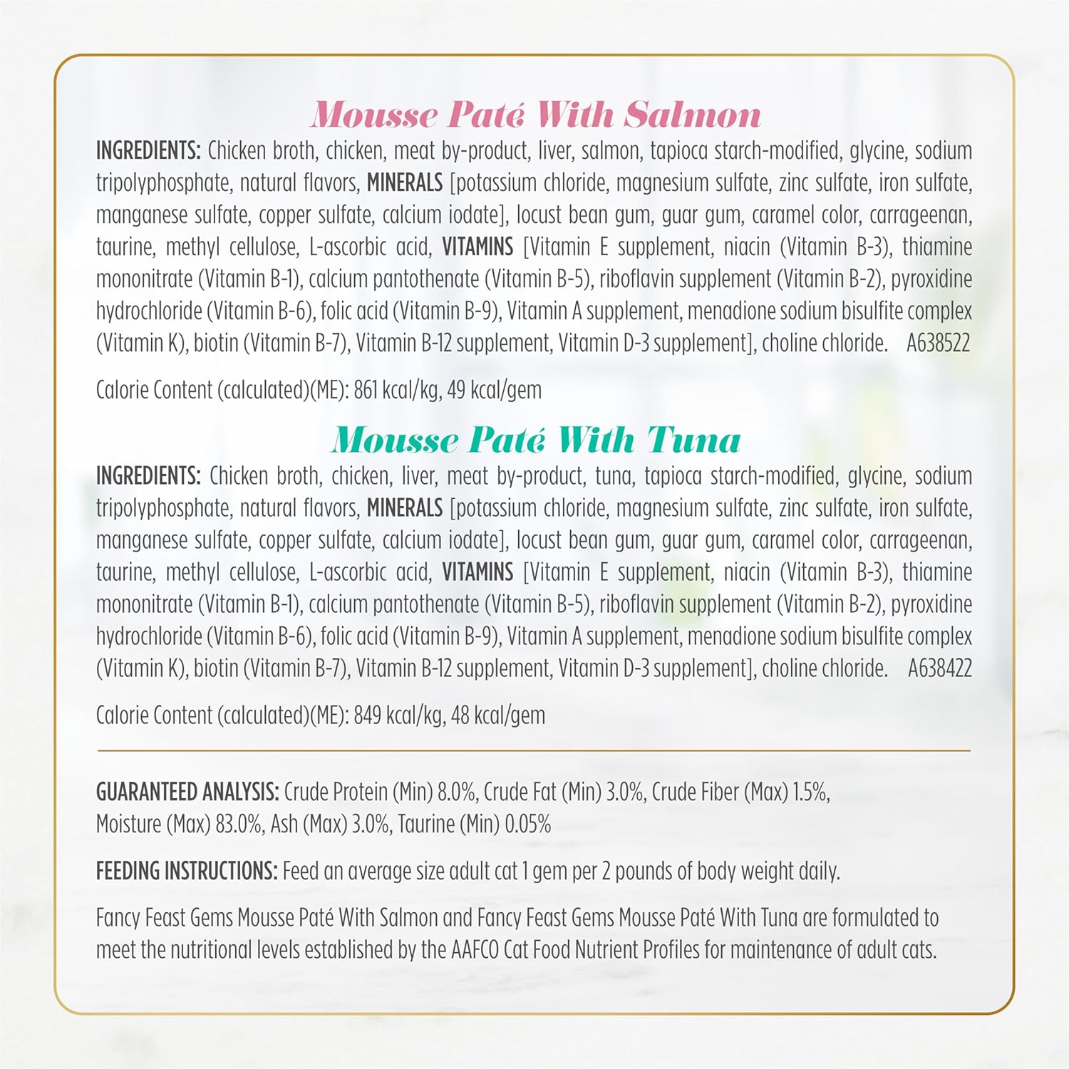- Cuisine Like You’ve Never Seen: This Fancy Feast Gems mousse cat food pate is crowned with savory gravy for layers of delight.