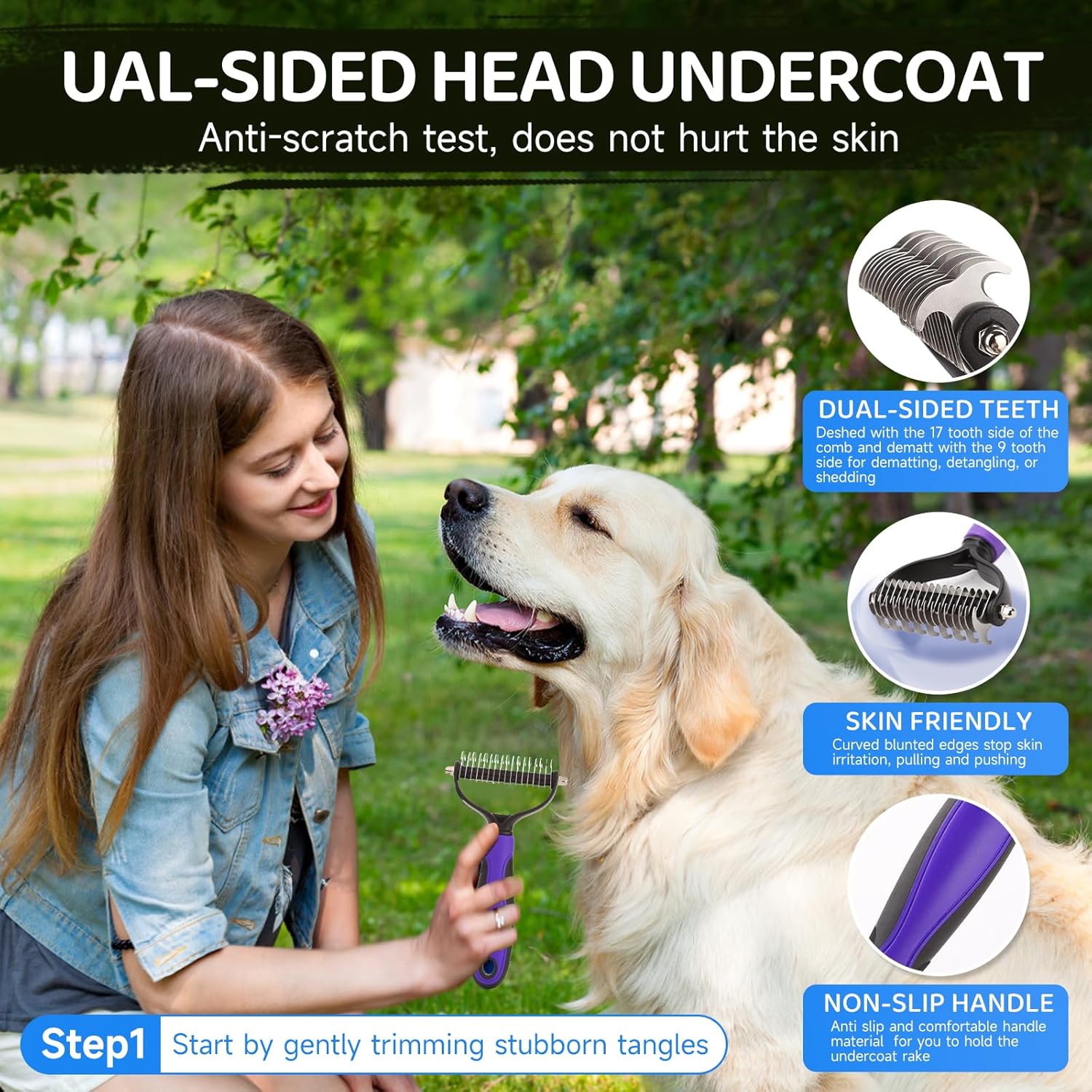 - Complete Grooming Solution for All Pets: This all-in-one grooming kit saves time and money. The self-cleaning brush, undercoat rake, and bath brush keep your pets clean and comfortable, while your home stays fur-free. Ideal for large, medium, and small animals.