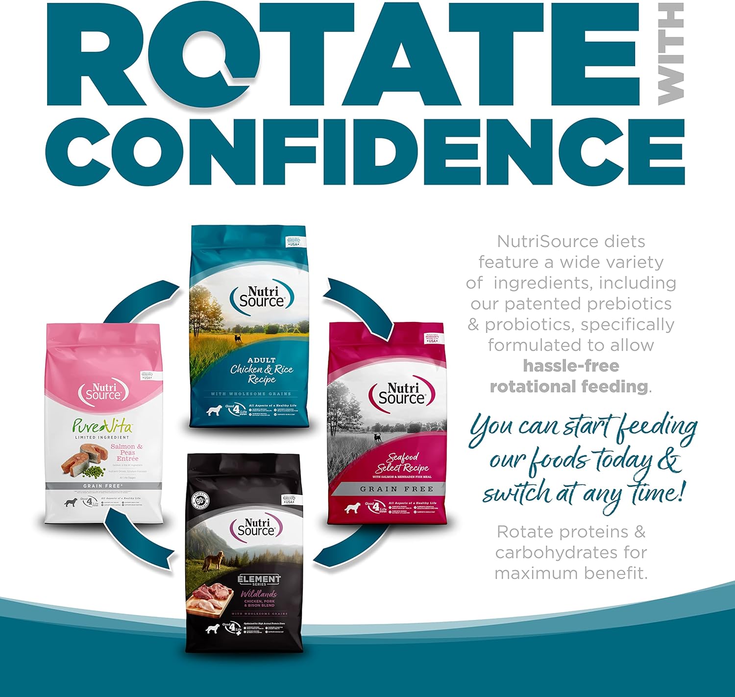 - As a member of our grain inclusive series, NutriSource Chicken and Rice Dry Dog Food is formulated to meet AAFCO guidelines for all lifestages