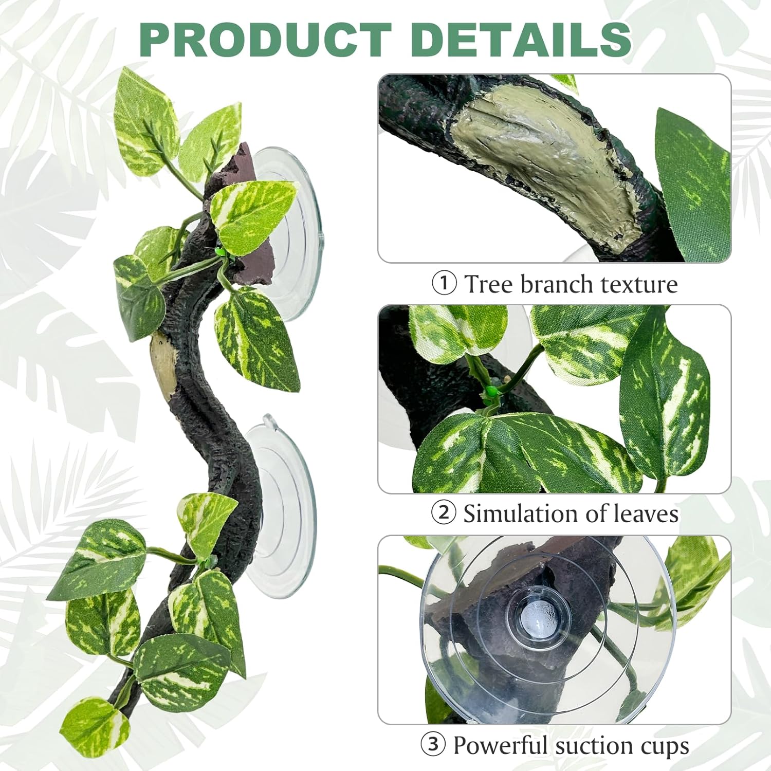 - [Powerful Suction Cups]: Branches for reptiles comes with 2 suction cups with strong adsorption, which can be stably fixed on the clean and smooth tank wall, not easy to fall off, let your lizard climb and play to its heart's content