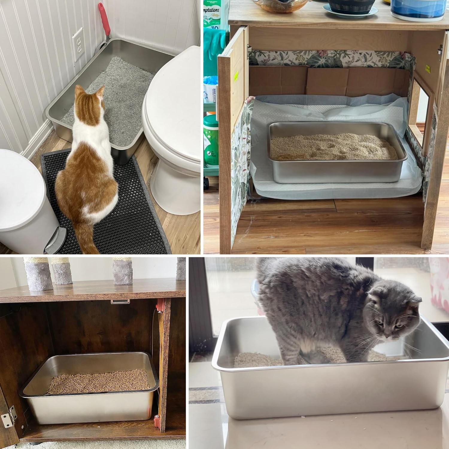 - Litter Box:Stainless steel cat litter box has a side height of 6 inches, making it easy for kittens to enter while also preventing litter from spilling.