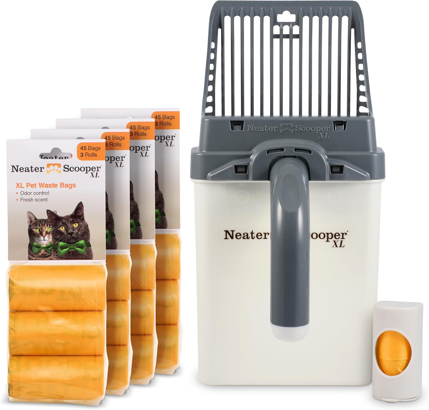 Neater Pet Brands Neater Scooper XL Cat Litter Scoop, 195 Refill Bags – Extra-Large Capacity Mess-Free Cat Litter Scooper with Bag for Large & Multiple Cats, Spill-Proof Litter Box Scooper with Holder