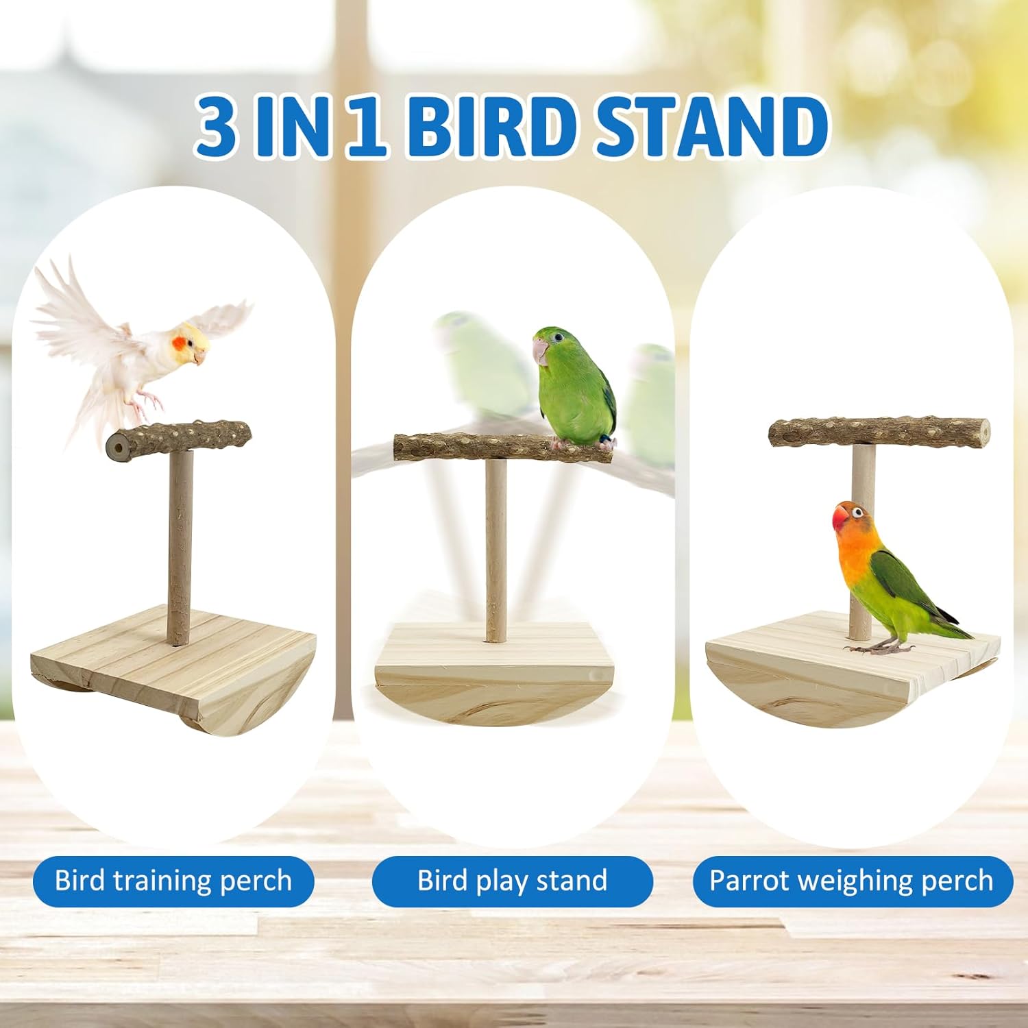 - ENHANCE INTIMACY: This portable bird perch can not only train the bird to rotate on it; it can also be convenient for you to catch bird droppings; whether you are studying; working or doing other things; your bird can be within your sight; by your side; this cockatiel perch can give more space to the bird; it also draws the distance between you and the bird closer; you can always observe the various movements of your pet