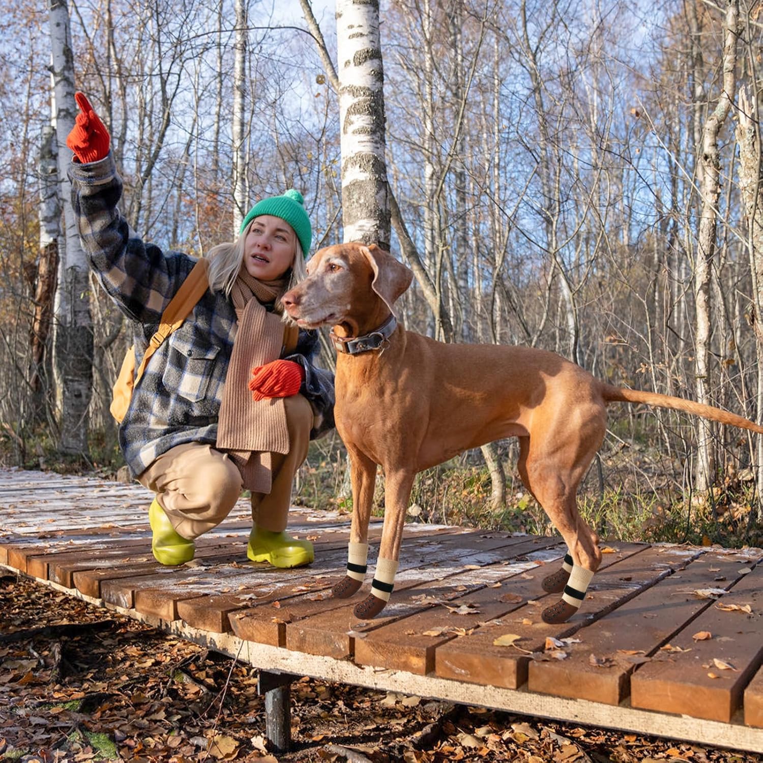 - DUAL SIDED ANTI-SLIP: Each side of the dog socks with grippers has lots of pawprint shape rubber, providing great extra traction when your dog walks on smooth surfaces. They work even if the socks are twisted. They're perfect for active dogs. And if your elderly dog has problems with slippery hind legs, they can help your old friend get around the house again