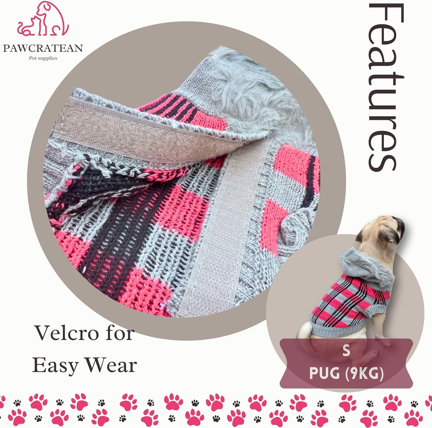 Cute Sweater for Dogs and Cats Soft Flannel Pet Outfit Warm and Cozy Animal Hoodie Small to Large Pet Clothes for Halloween Parties and Everyday Wear (Medium, Pink Checkered with Hat)