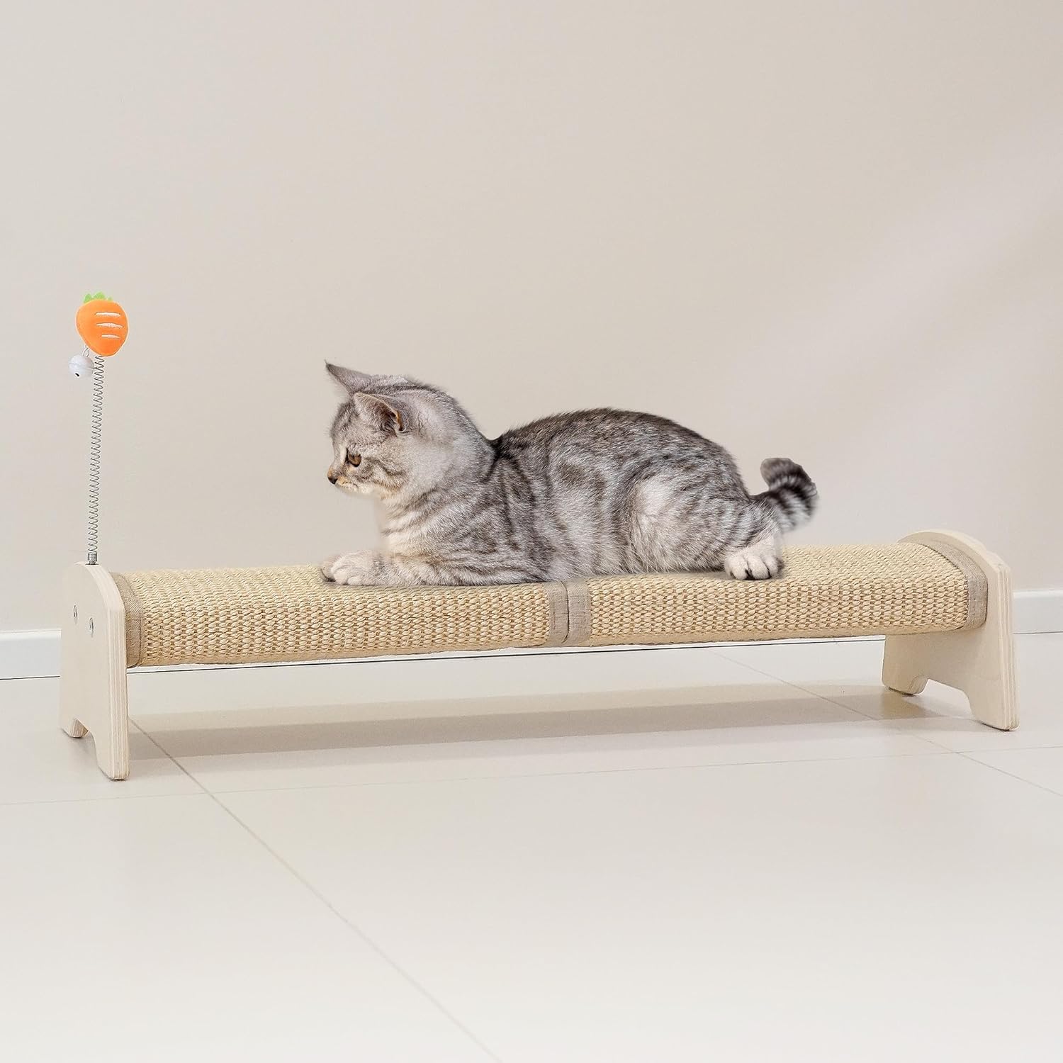 - ✅ Fun Spring Toy – Includes an 8.5" carrot-shaped spring toy with a bell, designed to spark curiosity and help your cat release excess energy.