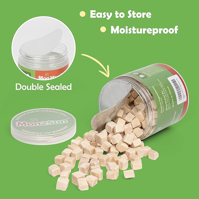 - [Easy to store] Freeze-drying locks in nutrients and freshness. Packaged in a double-sealed jar to keep moisture out, these treats are easy to store and carry when you're on the go. It is easy to carry when you going out.