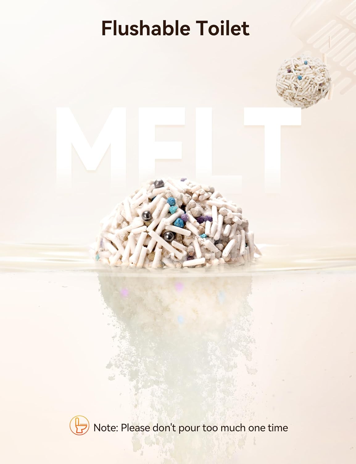 - 【Food-Grade Ingredients & Flushable】Our cat litter made from natural food-grade pea and corn fibers, safe and additive-free to ensure safe toileting for your feline. This cat litter can be dissolve in water and can be poured into the toilet (Note: pour small amounts of litter into the toilet multiple times to prevent clogging)