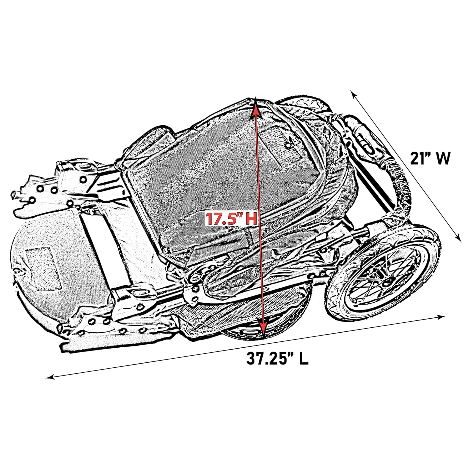 - Front wheel fixed and swivels; 12" Quick -release tires ride like air won't go flat!