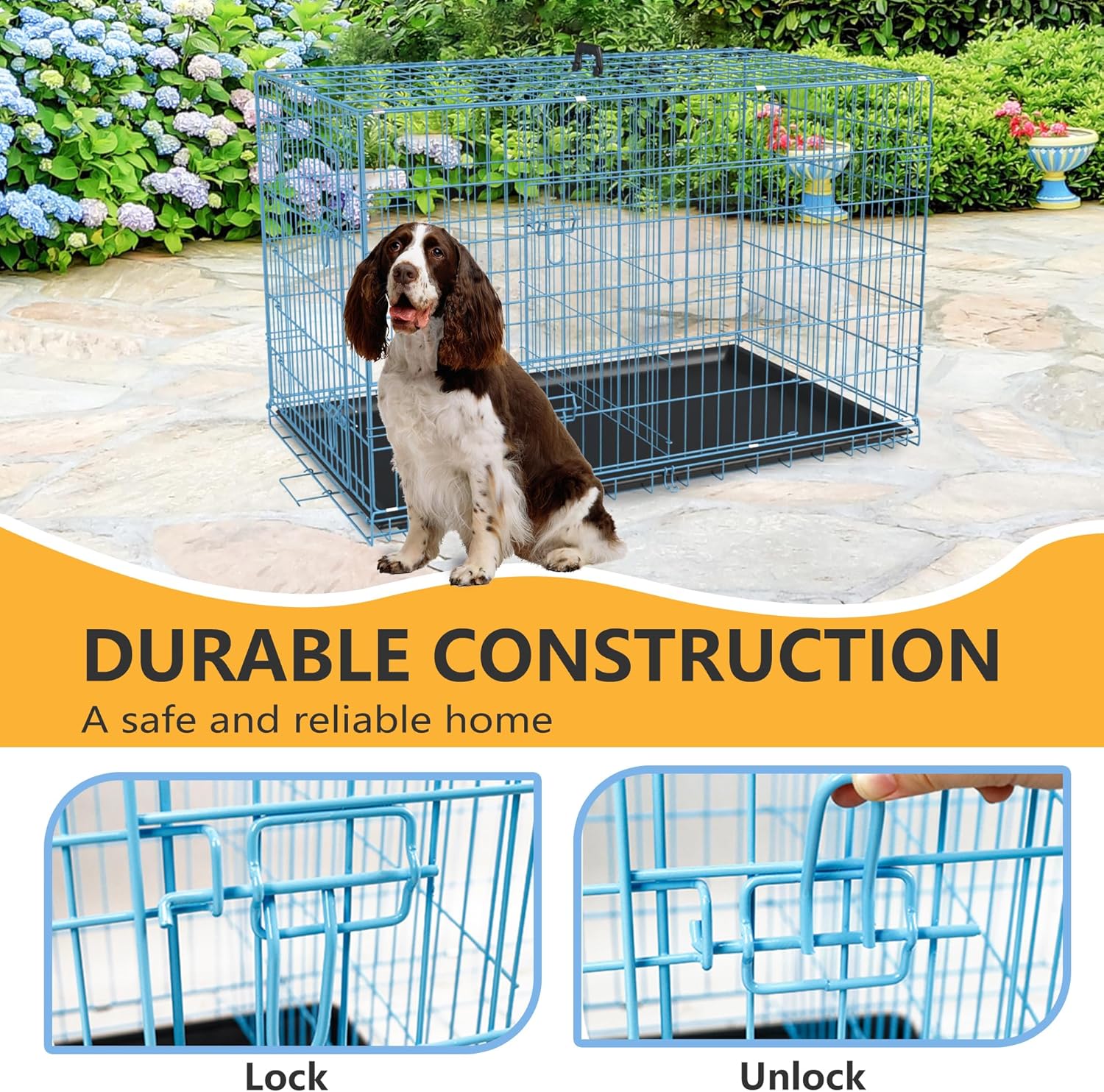 - 【Leak-Proof Plastic Tray】This dog crate features a detachable, leak-proof plastic tray that runs the length of the crate, making cleanup simple in the event of an accident. For dog dishes that won't slip, look for a textured surface.Dog cage dog crate dog kennel