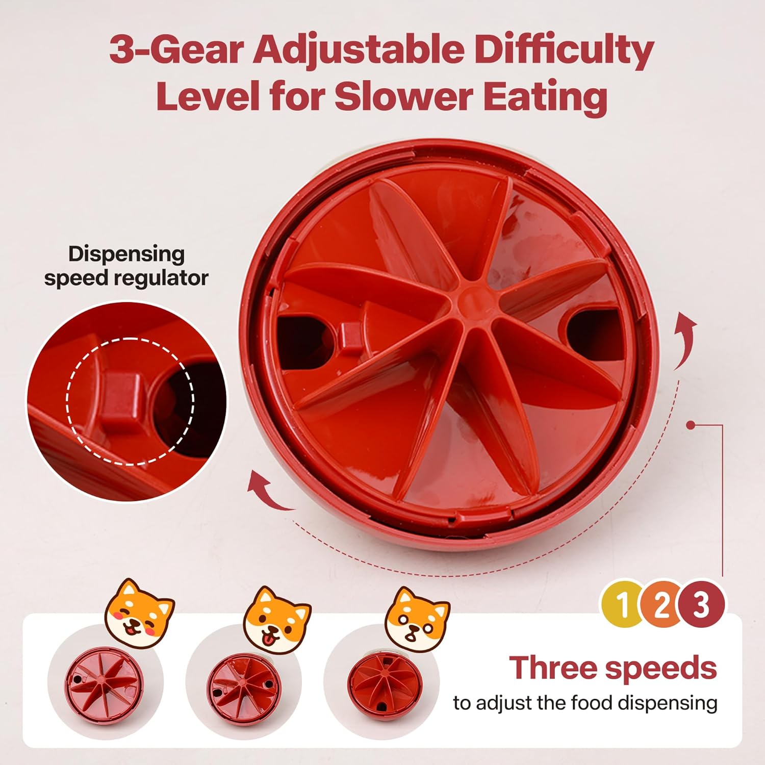 - Adjustable Food Leakage Dog Treat Ball: With 3 adjustable difficulty settings,this dog toy treat dispenser allows you to customize the treat release speed,helping dog to eat slower,you can also turn the food leakage feature off and play with it as a toy ball