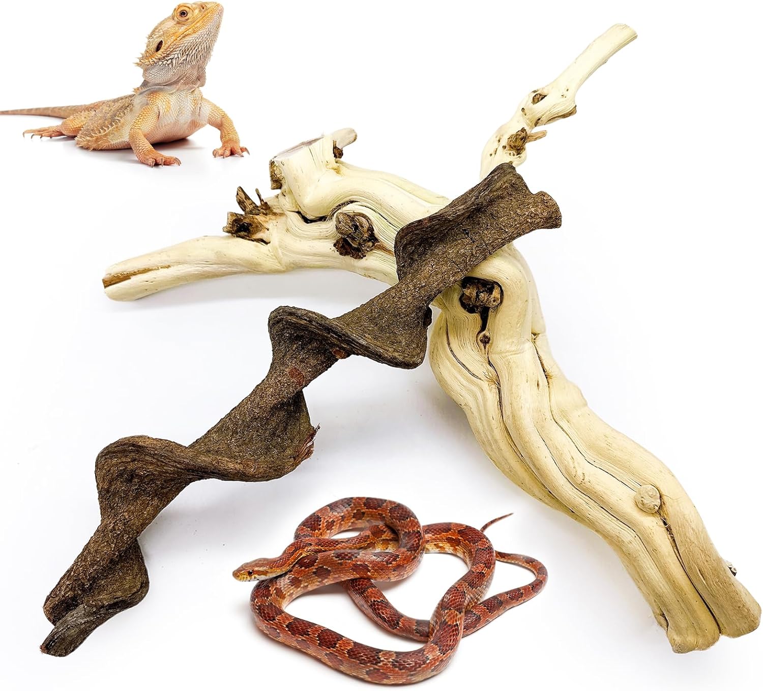 - 【Natural Wood】The 2 reptile climbing branches are cut from naturally growing wood branches and vine branches, carefully selected to the appropriate thickness and length for your reptile.