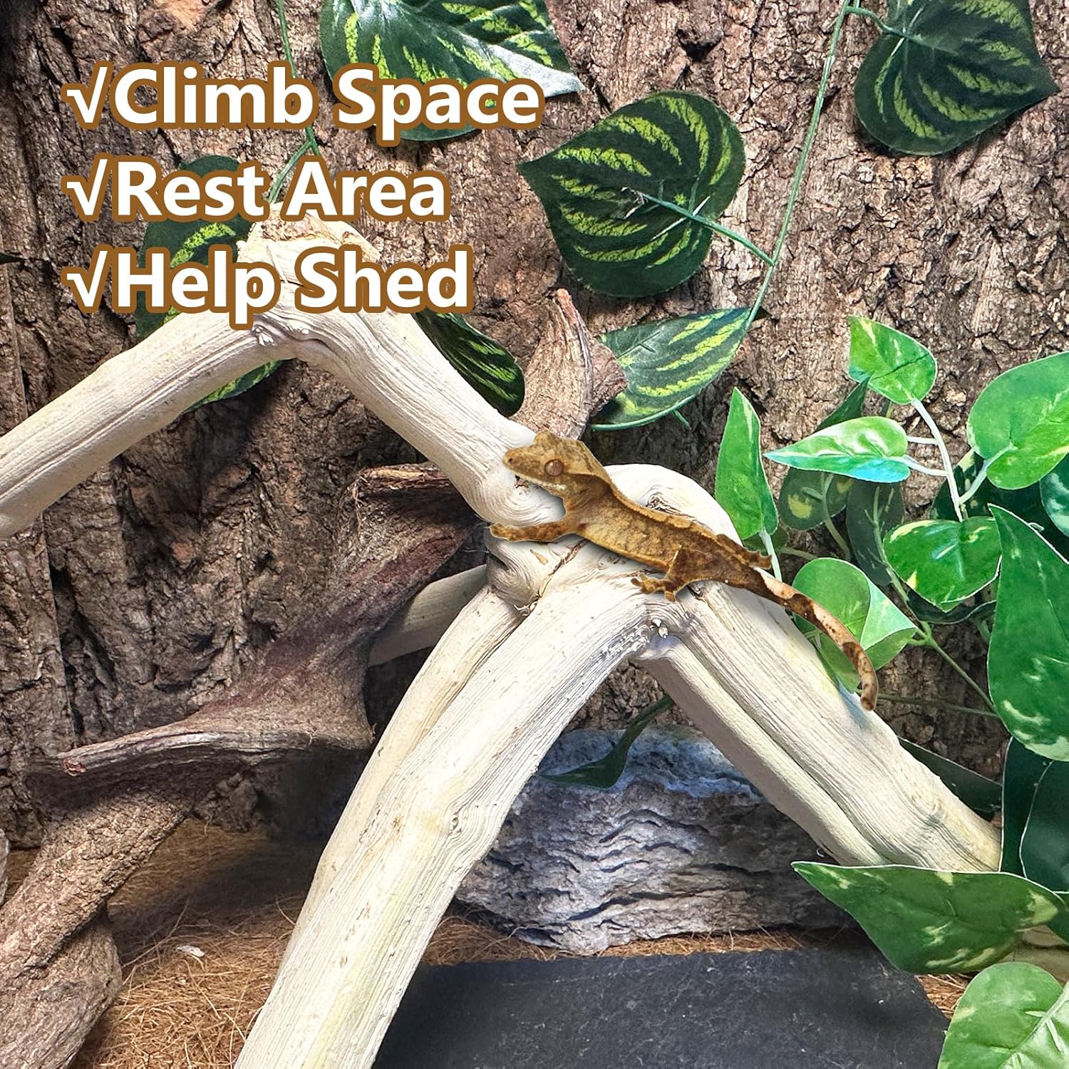 - 【Provide Climbing Space】Branches for reptiles can provide three-dimensional climbing space as well as resting areas for sunbathing. The slightly rough surface of these branches can also help some reptiles shed. Suitable for lizards, snakes, bearded dragons, geckos, chameleons, frogs.