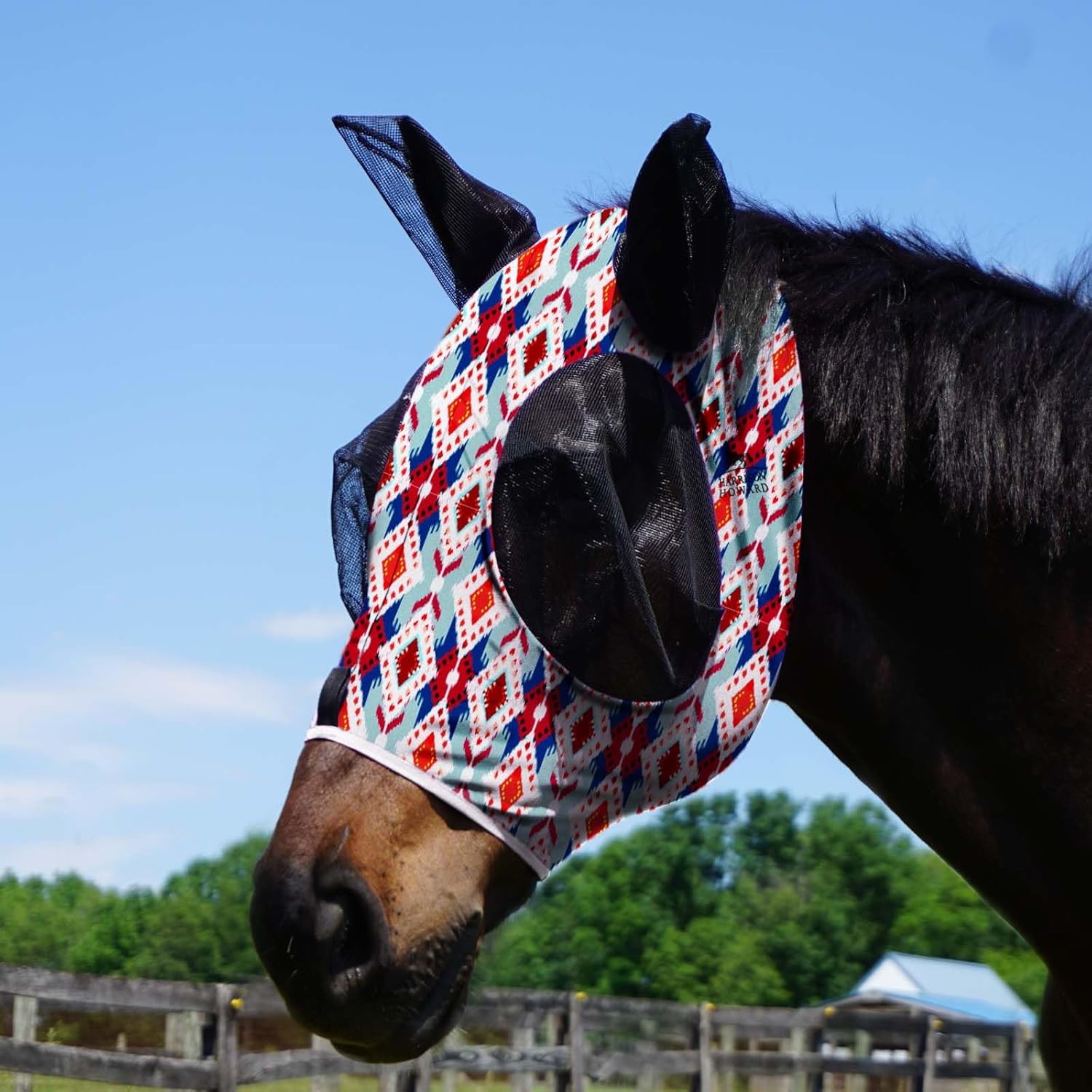 Harrison Howard Super Comfort Stretchy Fitting Horse Fly Mask with UV Protection Soft on Skin with Breathability Tribal Abstract Pony