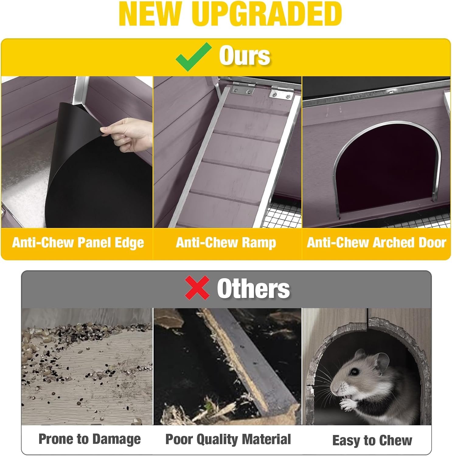 - 2-in-1 Multi-Level Design: Features distinct sleeping, dining, bathroom, and play areas. Spacious second floor (36.6"L x 19.6"W) provides ample room for 1 rabbit and 1-2 small pets.