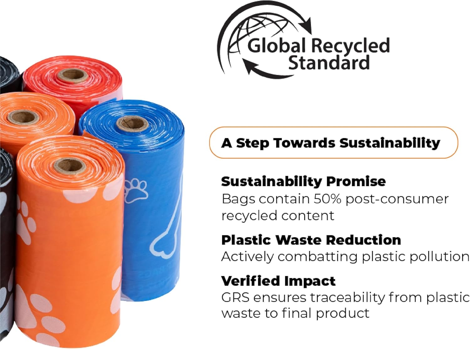 - Sustainability Promise: Embrace sustainability with every clean-up; our bags contain 50% post-consumer recycled content, making them an ideal choice for environmentally conscious pet owners. Using our certified poop bags for dogs not only reduces waste but also supports a greener planet with every use