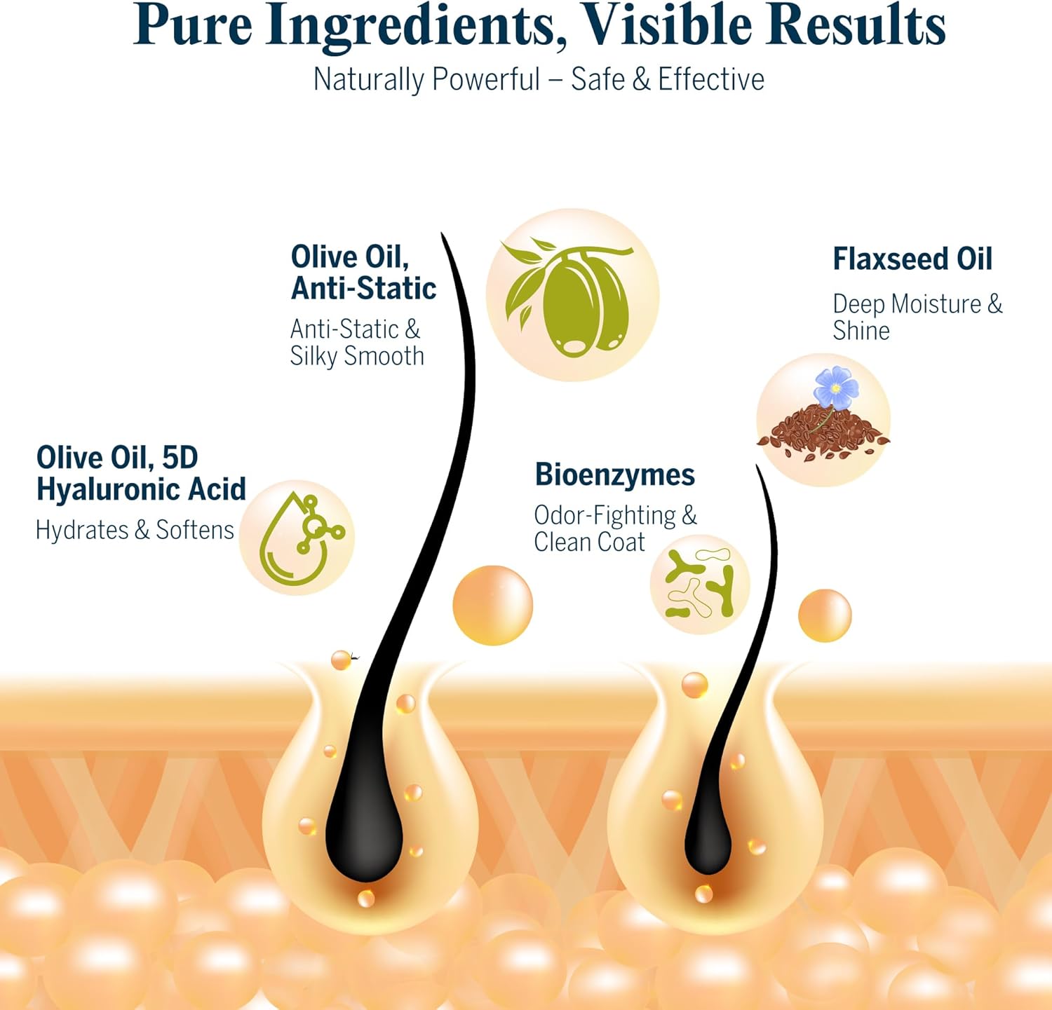 - Deodorizing & Anti-Static Leave-In Spray: More than just a pet detangler, our leave-in grooming spray also works as a dog deodorizing spray & cat perfume, neutralizing odors with bioenzymes while preventing static & frizz in dry weather.