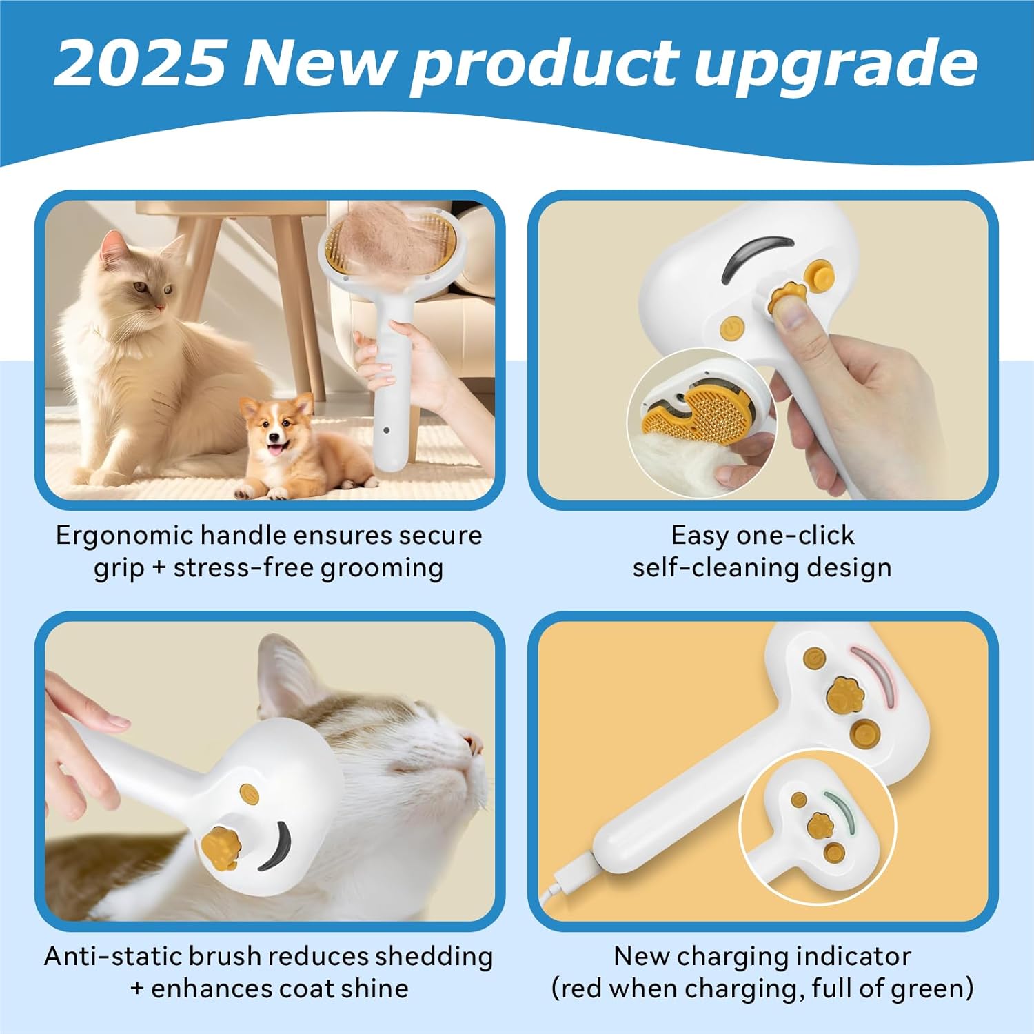 4-in-1 Pet Steam Brush for Dog & cat brush for shedding,Spray Hair Removal Comb with Waterless Shampoo–Self-Cleaning Pet Grooming Tool for Shedding, Anti-Static & Skin-Friendly Design