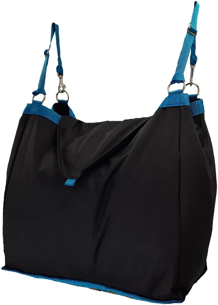 - CONVENIENT TOP-LOAD DESIGN - this hanging hay bag has an open top that is covered with a fold-over flap and secured with durable velcro. This design is both secure and easy to use: refilling your hay bag only takes seconds!