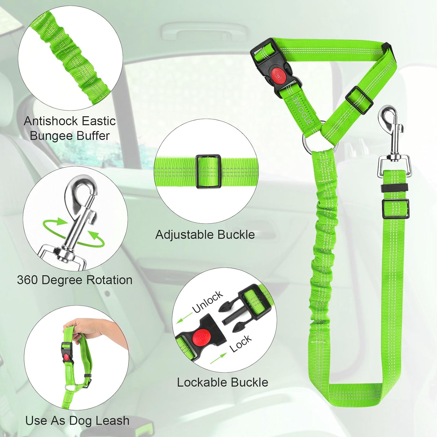 - Higher Security : The elastic buffer bungee with a reflective stitching design can prevent your dog from getting hurt when they are in an vehicle or in low-light environments. The headrest restraint can also protect your dog when they are pulled hard outside and help you locate them quickly to know thier status. The pet car seat belt allows your dog feel more comfortable and give you more peace of mind
