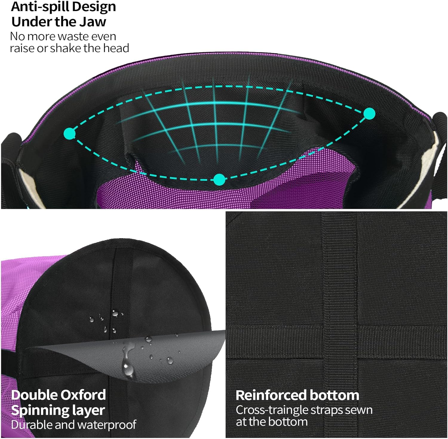 Horse Feed Bag 2 Pcs, Mesh Feed Bags for Horses, Muzzle Feedbag for Feeding Grain, Anti-Spill Design Feeder, Soft Neck Pad Nose Pad, Universal Fit (Purple, Pack of 2)