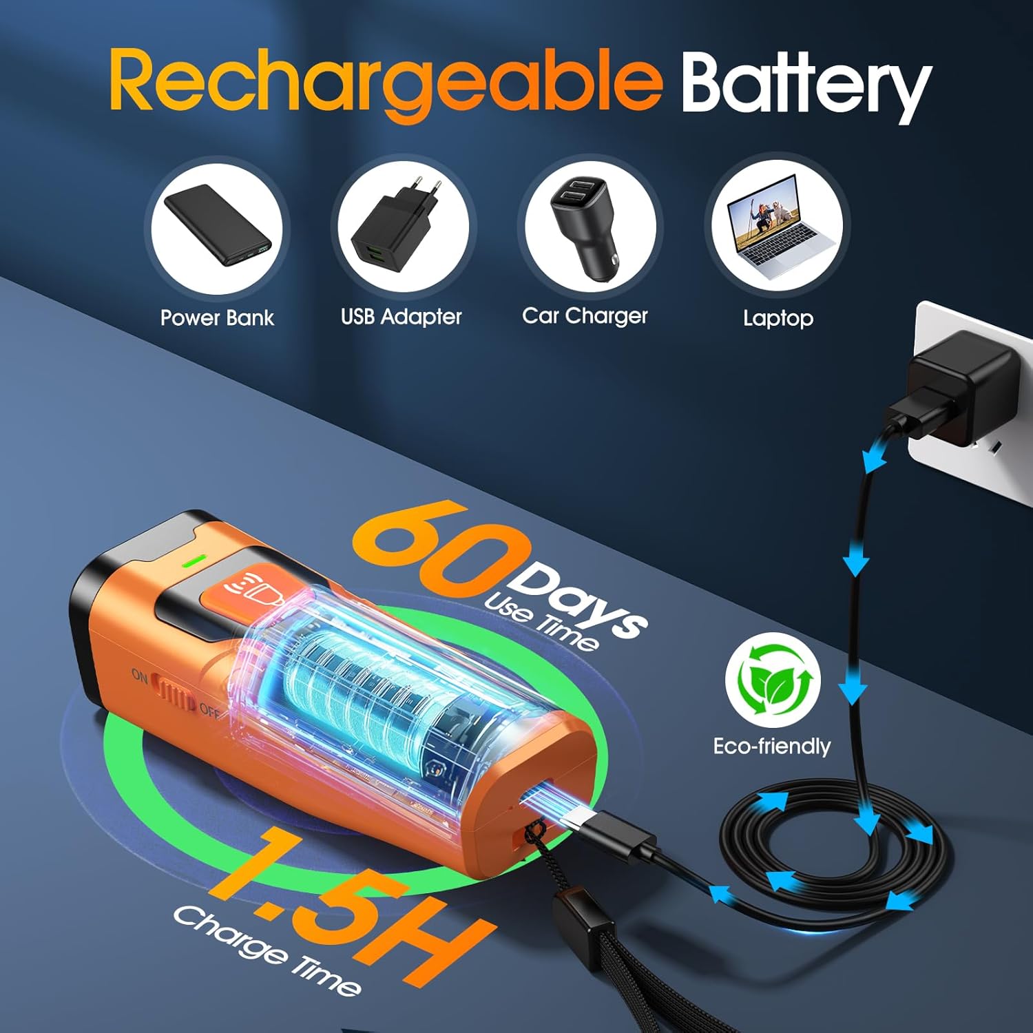 - 【USB-C Fast Charging】 This rechargeable anti barking device charges fully in just 1.5 hours using any standard USB-C port—whether from an adapter, power bank, laptop, or car charger. Once charged, the high-capacity battery supports up to 60 days of regular use, offering convenience for ongoing training. Unlike other bark collars, this device provides a safe, non-invasive, and stress-free experience for dogs of most breeds and sizes.