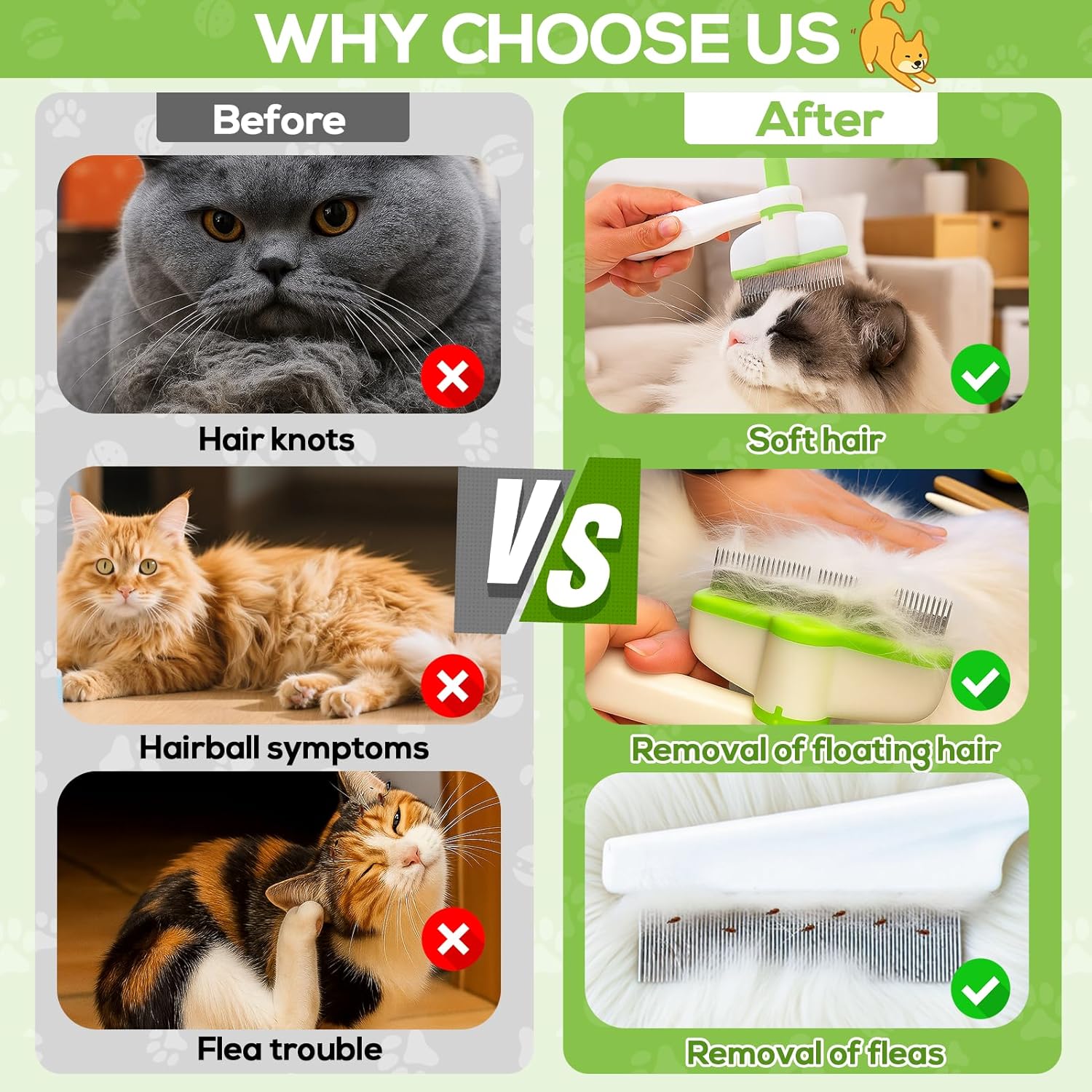 - Promotes Healthy, Shiny Coats:This cat comb is a must-have tool recommended by pet groomers to minimize shedding and promote healthy shiny coats. Its massage function stimulates blood circulation, increases natural oil secretion and improves your pet's health. It helps you detect your pet's skin problems at an early stage and perform regular grooming, which not only cleans up dandruff and dust, but also promotes hair growth and makes your pet's coat shinier, bringing health and happiness to you and your pet.